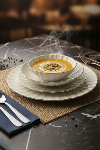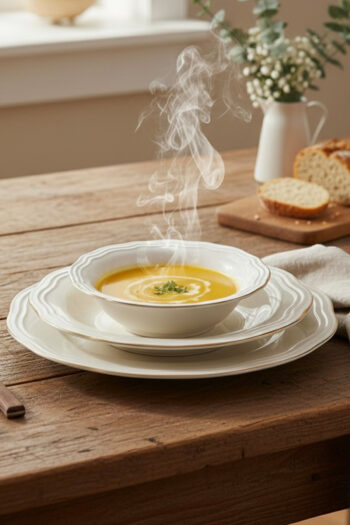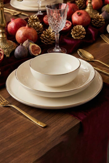 Tulü Porselen Gamze Serisi 6 Kişilik 24 Parça Gold File Detaylı Yemek Takımı