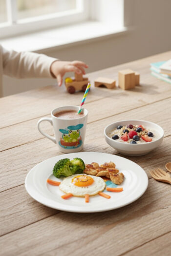 Tulü Porselen 3 Parça Sevimli Kurbağa Desenli Bebek ve Çocuk Yemek Seti