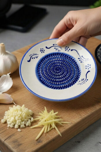 El Yapımı Seramik Rende Tabağı (13 cm) – Sarımsak, Zencefil, Meyve Püresi ve Bebek Maması Hazırlayıcı