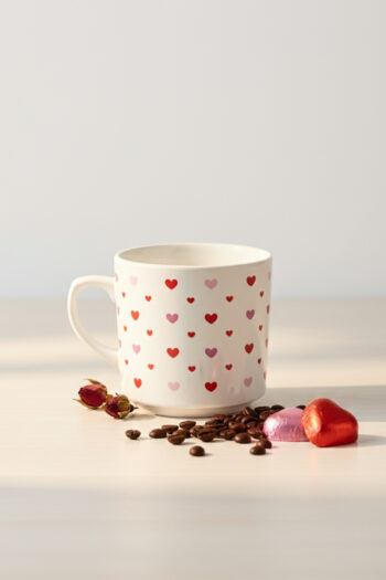 El Yapımı Kırmızı Çiçekli Tek Kişilik 2 Parça Seramik Kahve Fincan Seti