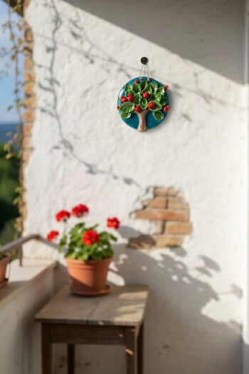 El Yapımı Kabartmalı Nar Ağacı Seramik Duvar Süsü (21cm)