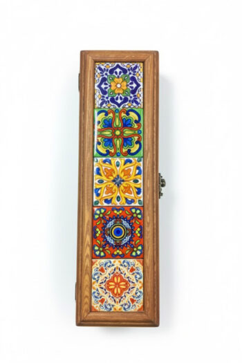 El Yapımı Çini Karo Baskılı Ahşap Tespih Kutusu (5x15cm)