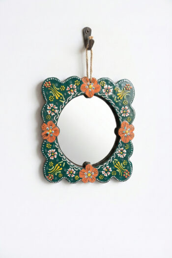 El Yapımı Ahşap Çerçeveli Etnik Desenli Çini Karolu Ayna