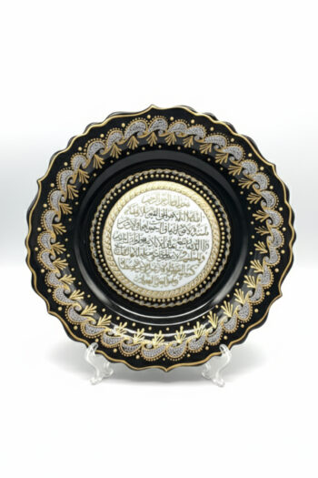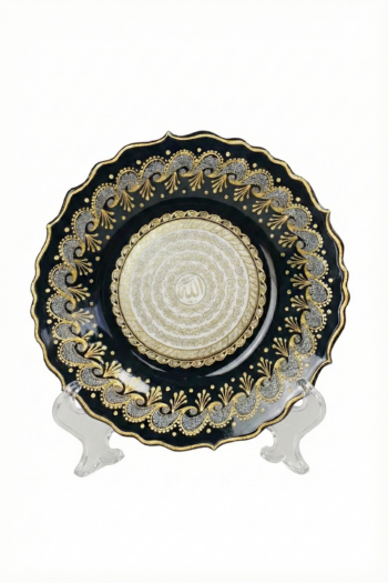 El İşi Gümüş ve Altın Desenli Osmanlı Tuğralı 30 cm Çini Tabak