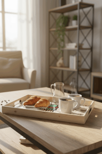 Ahşap Tepsili 6’lı 13 Parça Seramik Kahvaltı Seti