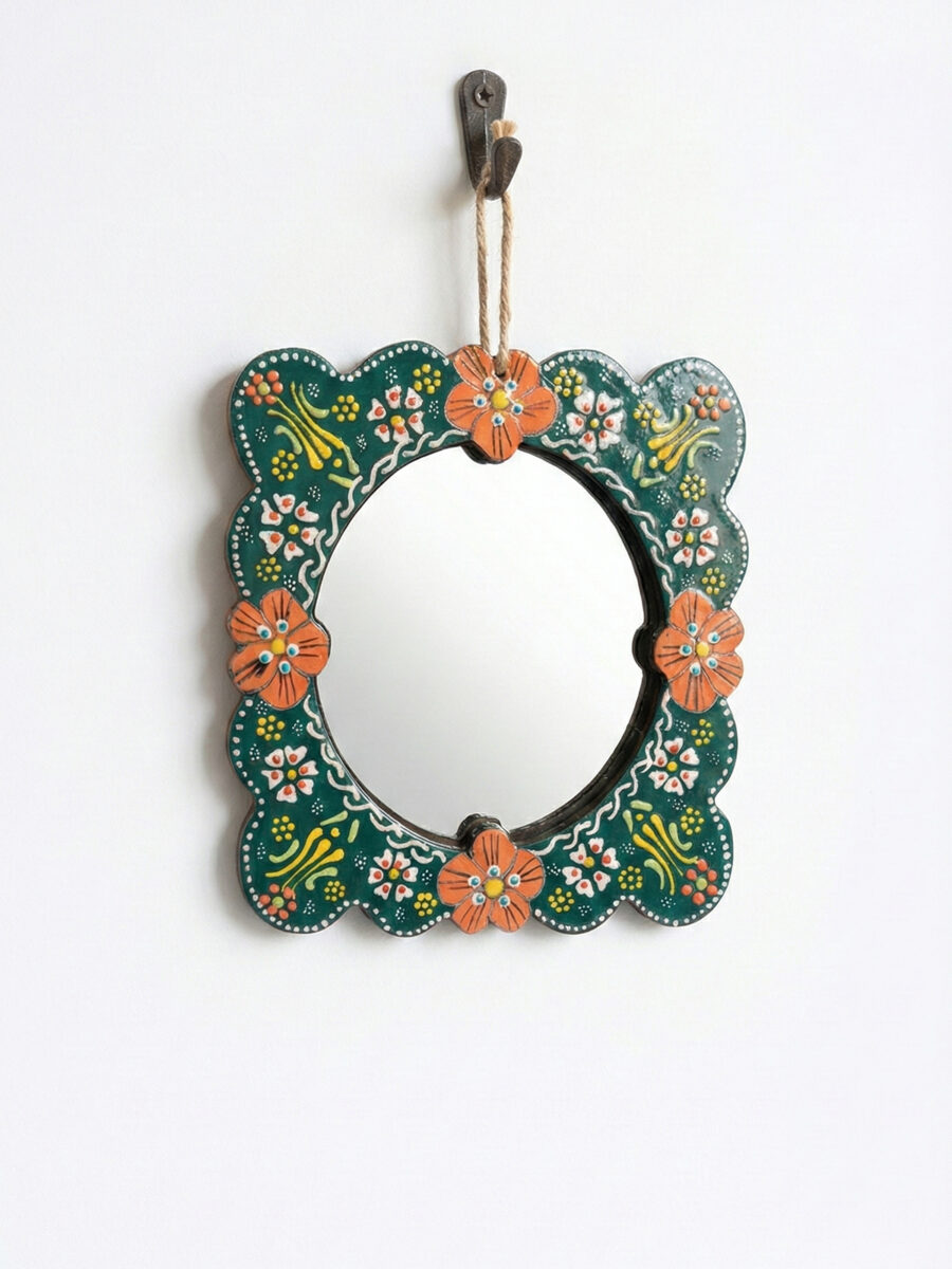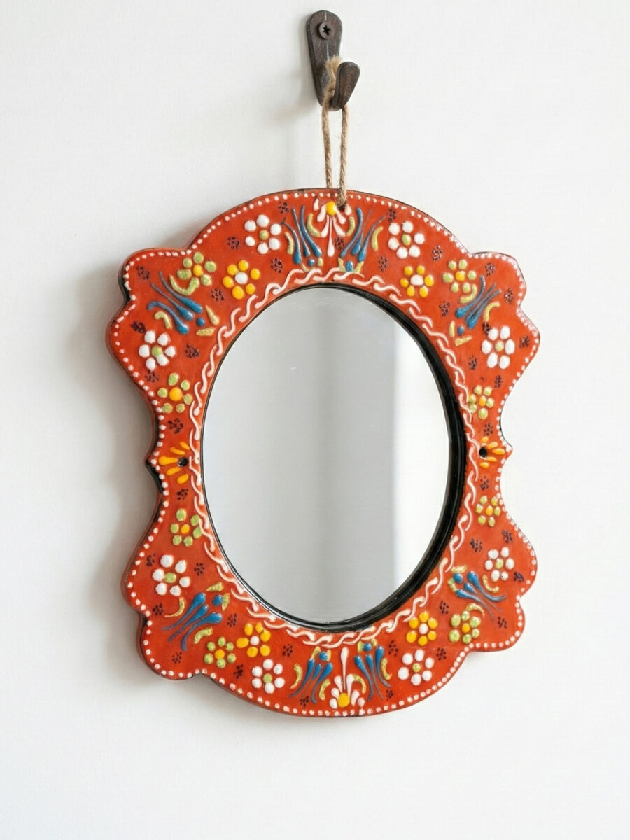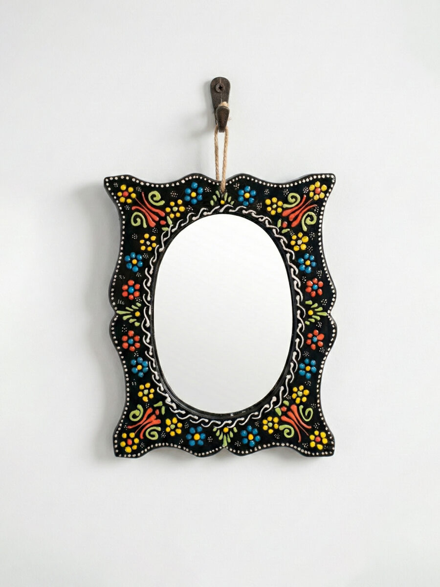 Evinizin en sade duvarını, geleneksel motiflerin ışıltısıyla bir sanat köşesine dönüştürün. El işçiliğiyle bezenmiş kabartma detayları ve solmayan canlı renkleriyle bu seramik çini ayna; antre, banyo veya salonunuza hem otantik bir şıklık hem de ferah bir derinlik katmak için tasarlandı.