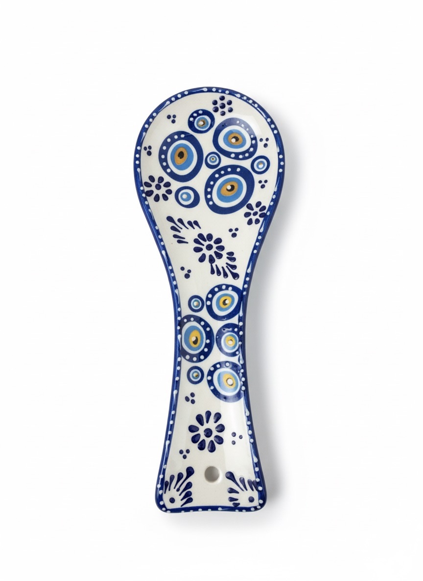 El Yapımı Mavi Çini Kabartmalı Kaşıklık