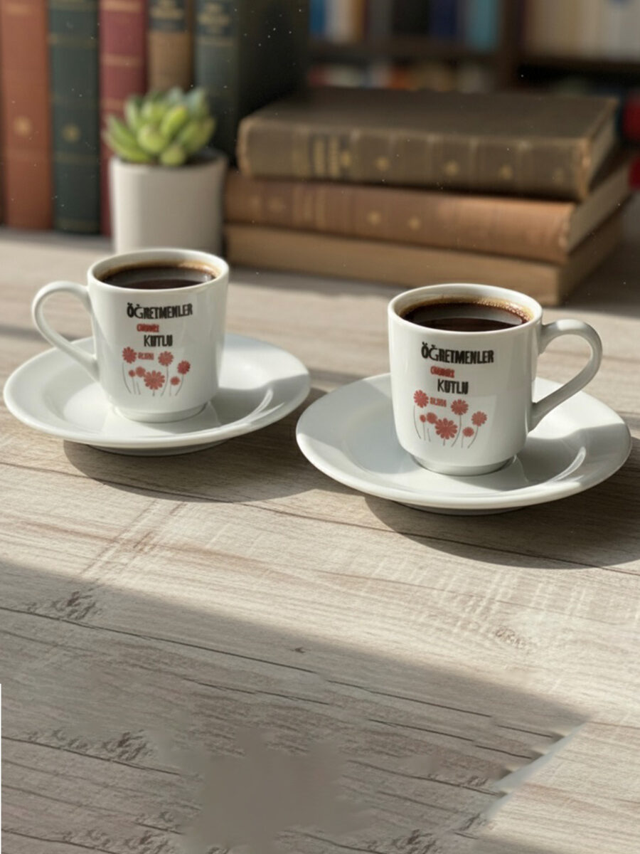 24 Kasım Öğretmenler Günü Özel Seri: Kadife Kutulu 2 Kişilik Türk Kahvesi Fincan Takımı