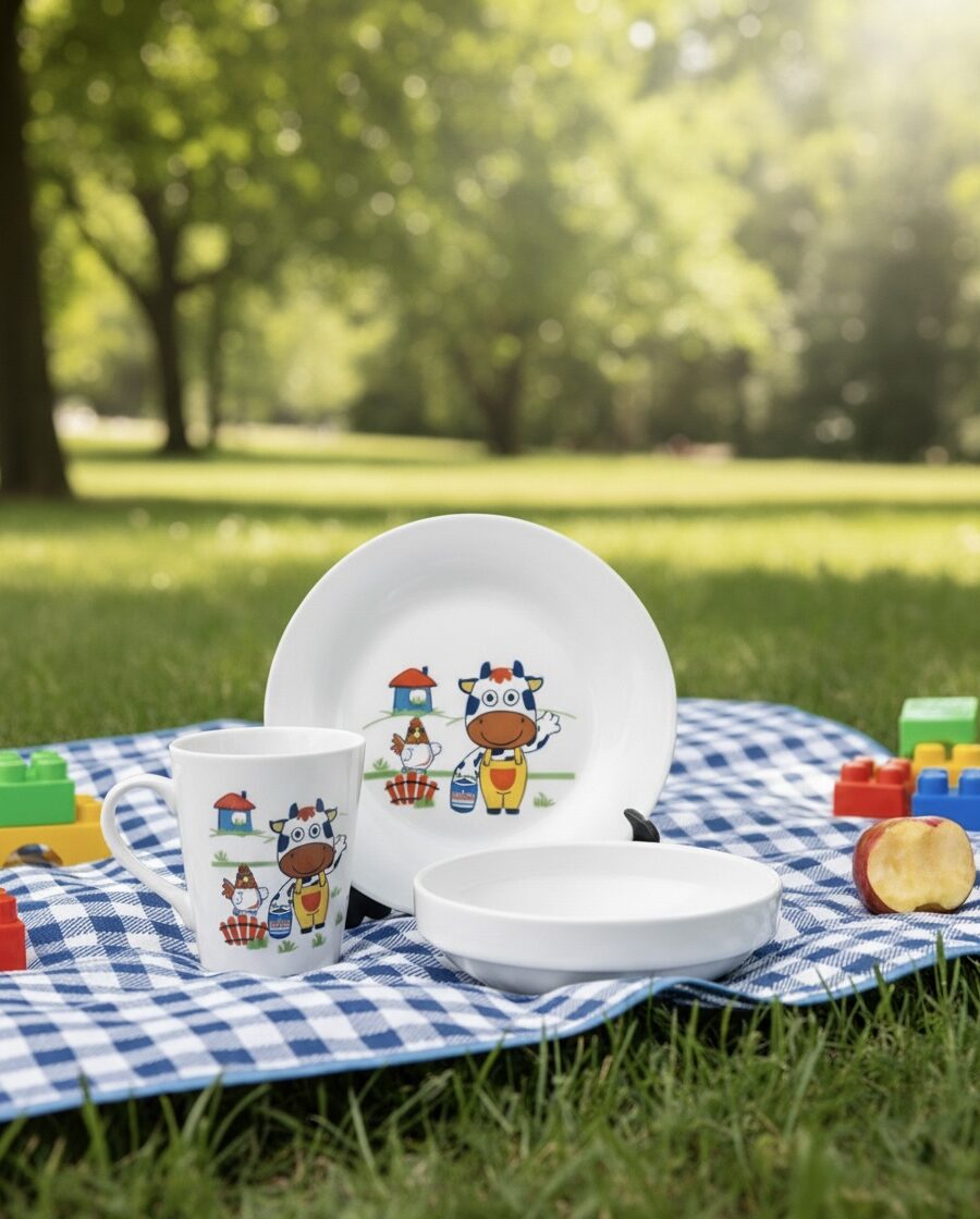 Tulu Porselen 3 Parça Sevimli İnek Desenli Bebek ve Çocuk Yemek Seti