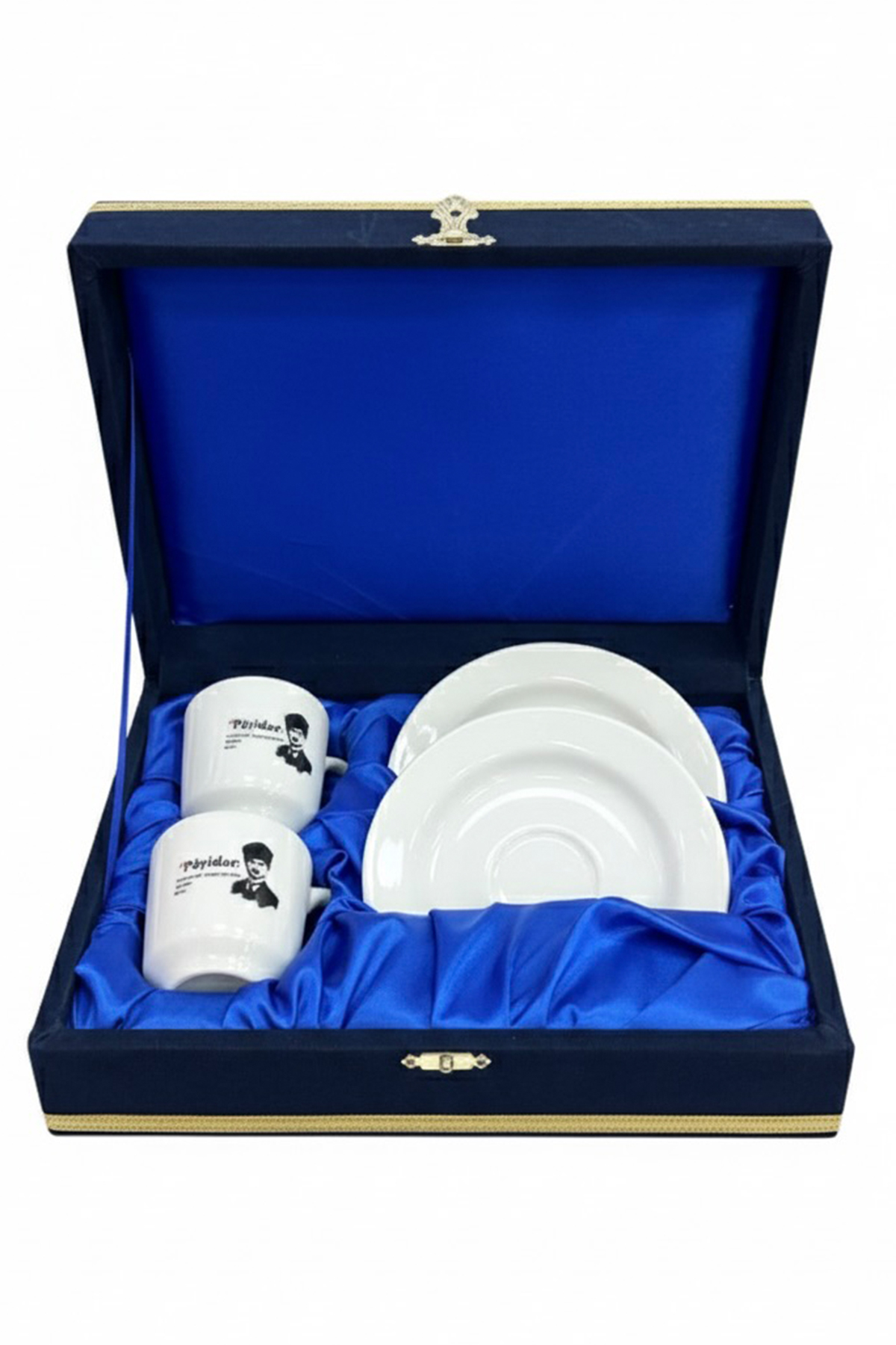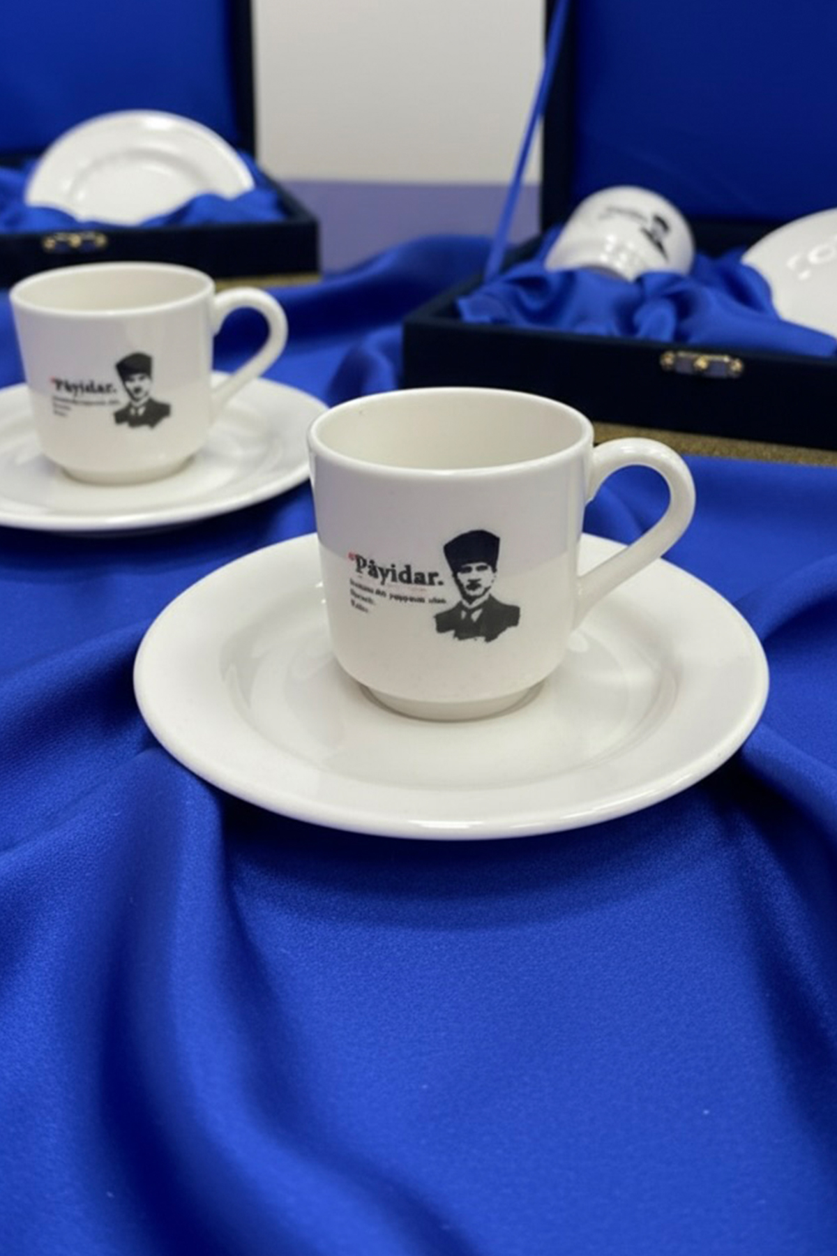 Atatürk Portreli Kadife Kutulu 2 Kişilik Türk Kahvesi Fincan Takımı