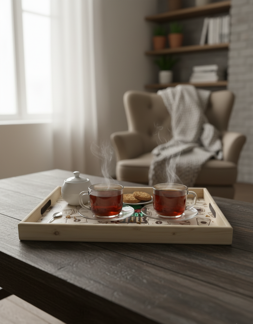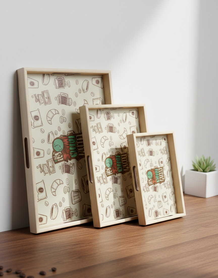Ahşabın sıcak dokusunu desenleriyle buluşturan bu 3 farklı boydaki tasarım tepsi seti; çay ve kahve saatlerinize sanatsal bir dokunuş katarken, göz alıcı detaylarıyla hem misafirlerinizi etkileyecek şık bir sunumluk hem de sevdikleriniz için zarafet dolu, unutulmaz bir hediye seçeneğidir.