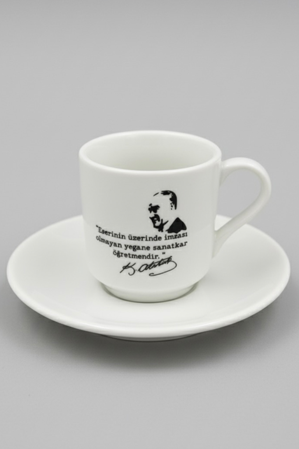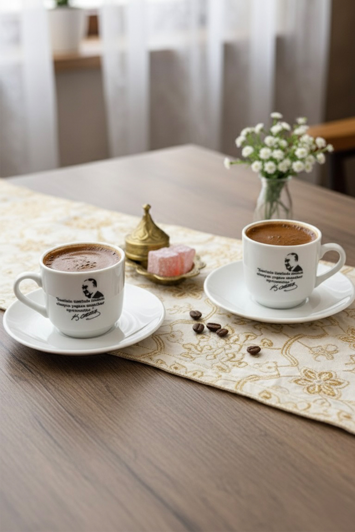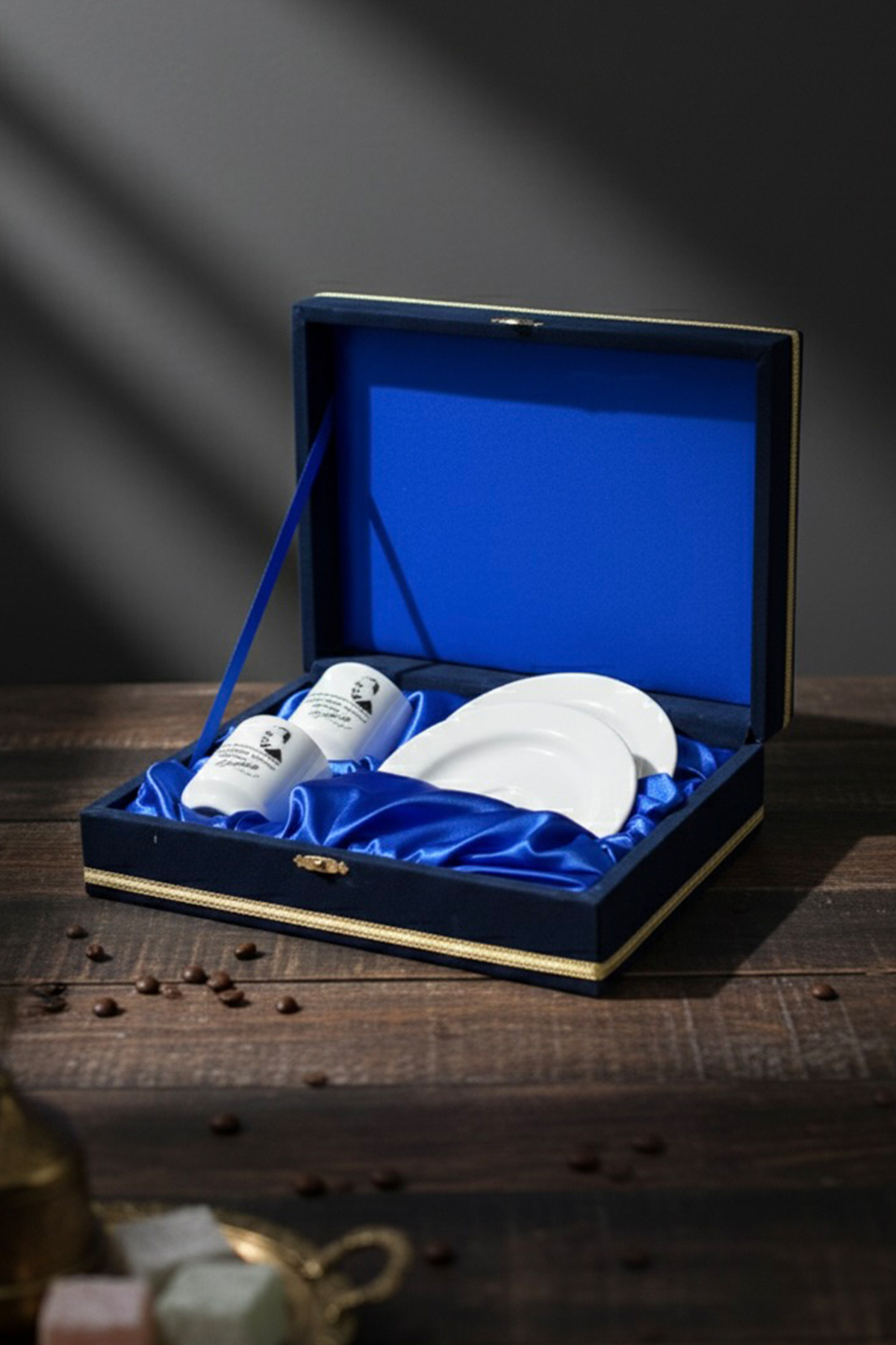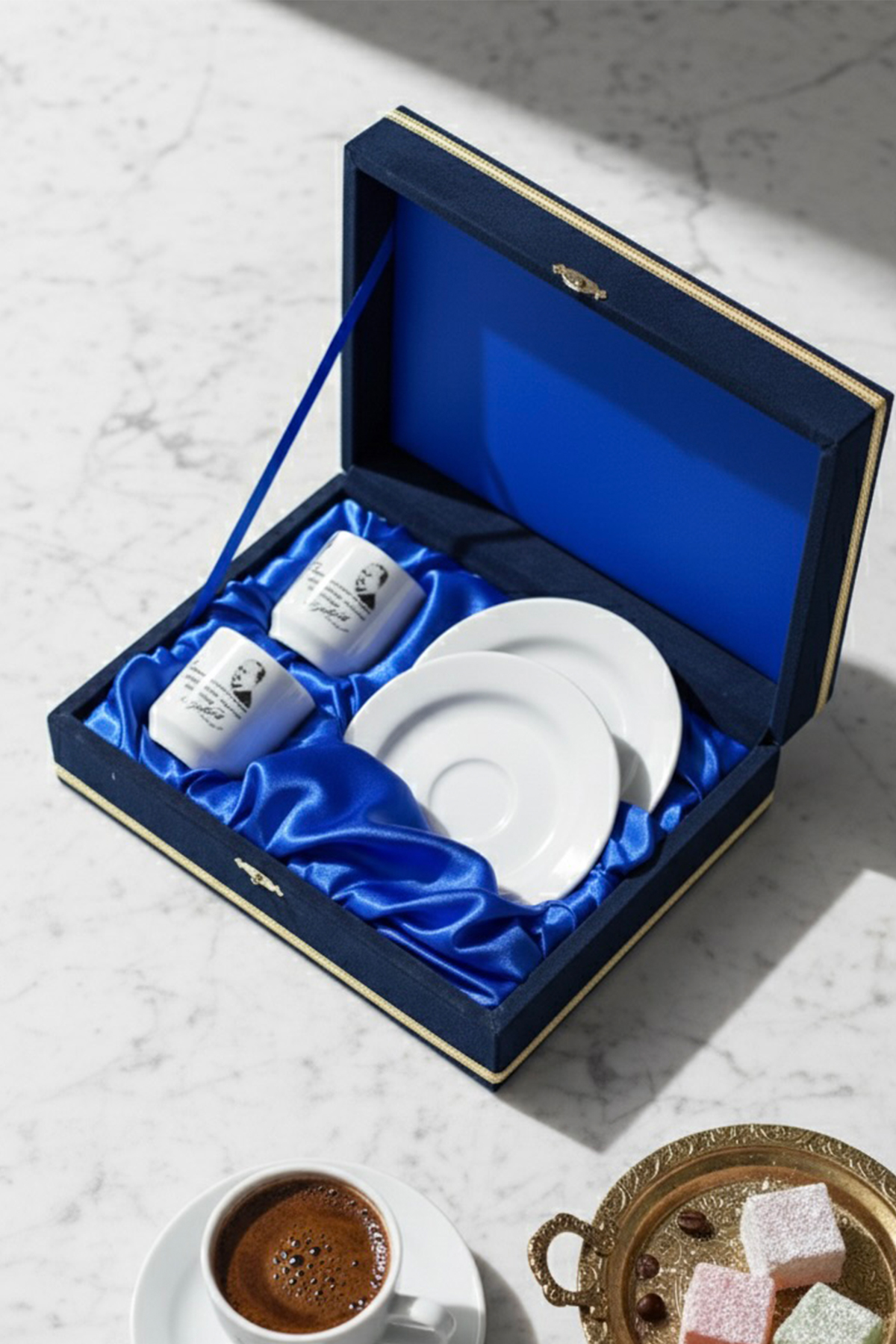 Atatürk Portreli ve İmzalı Kadife Kutulu 2 Kişilik Türk Kahvesi Fincan Takımı
