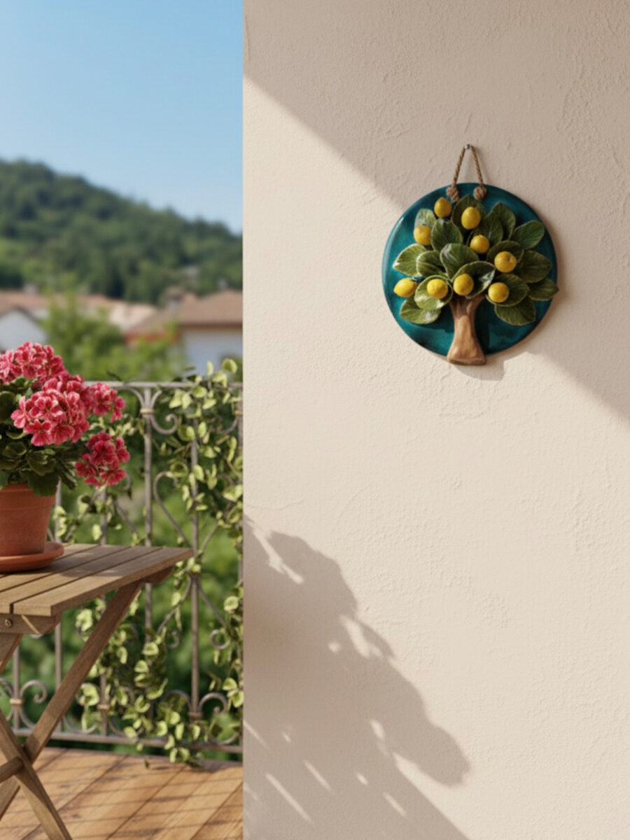 El Yapımı Kabartmalı Limon Ağacı Seramik Duvar Süsü (21cm)