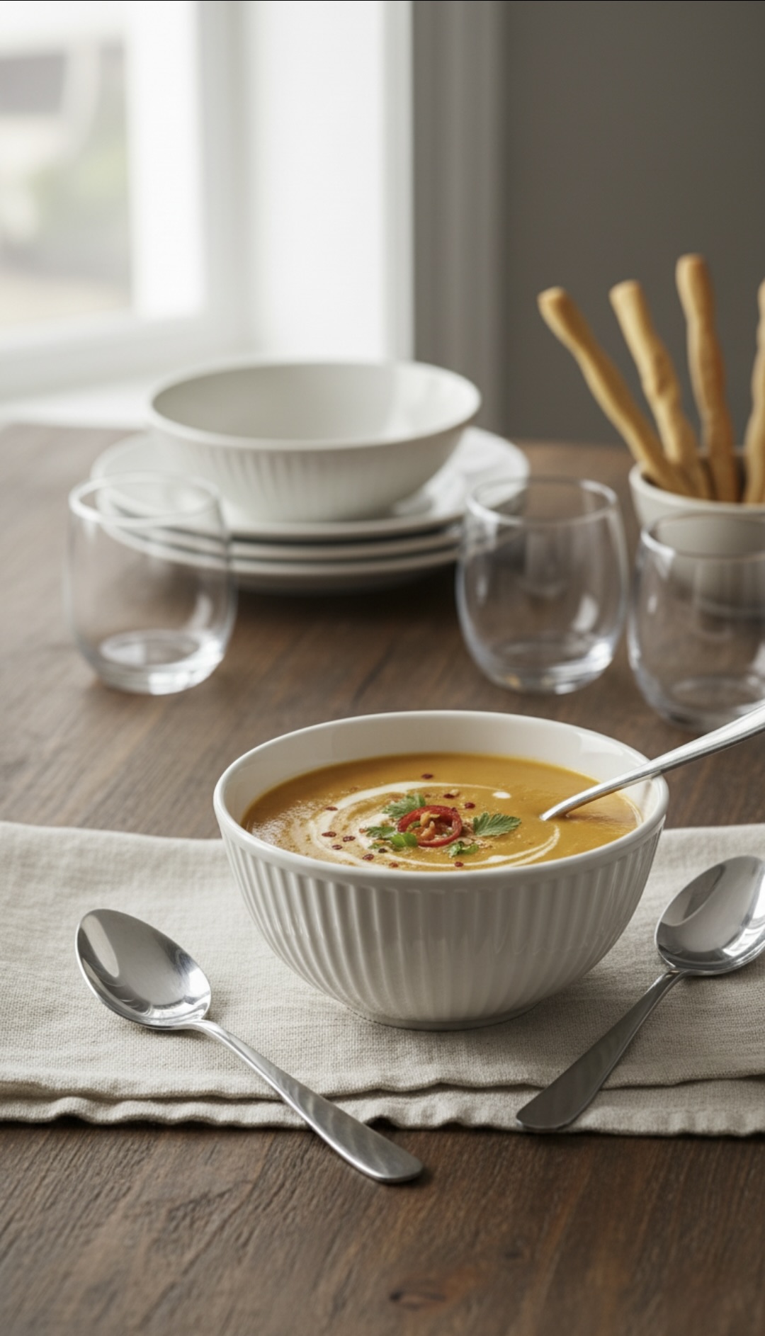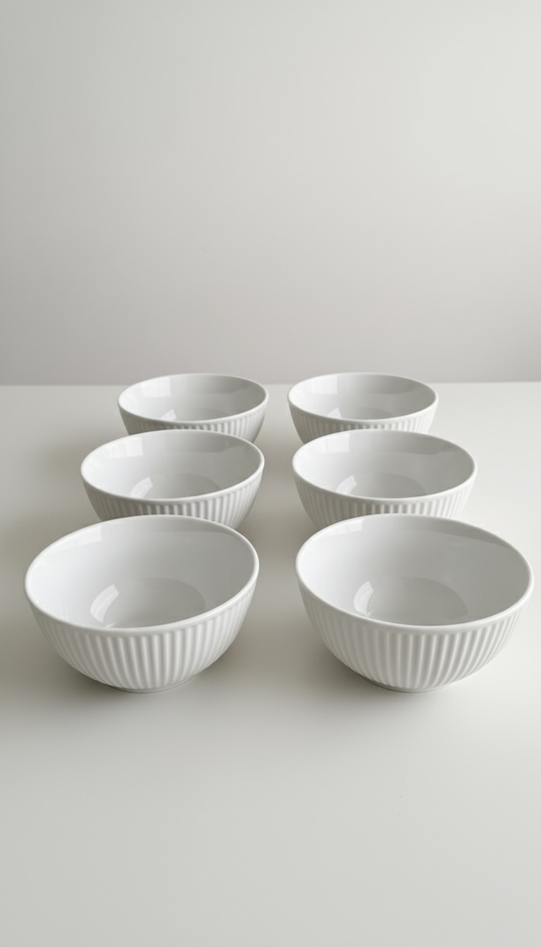 Beyaz Çizgi Desenli 6’lı Çok Amaçlı Yuvarlak Kase Takımı – Çorba, Meyve, Çerez, Sos ve Kahvaltılık Sunum Seti
