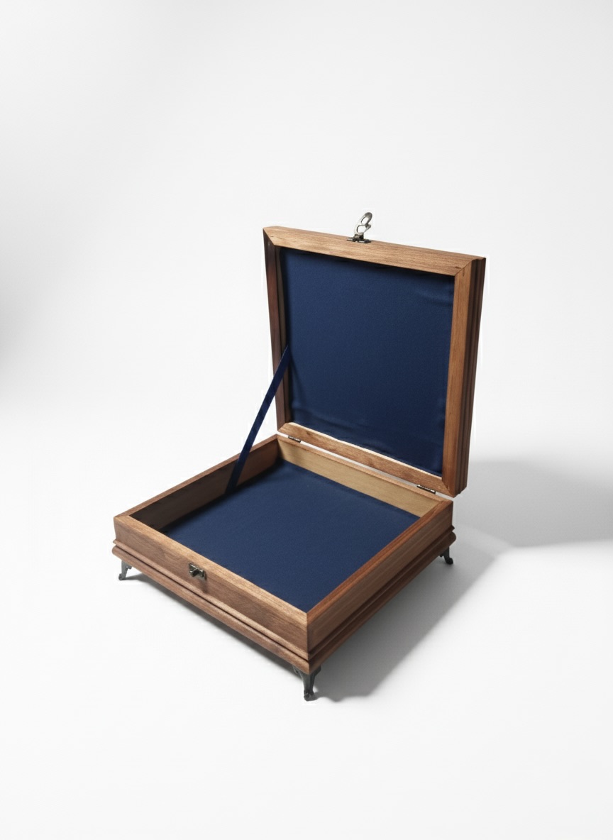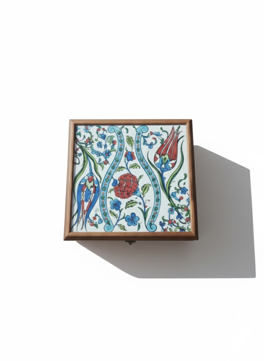 El Yapımı Çini Karo Baskılı Ahşap Takı Kutusu (20x20cm)