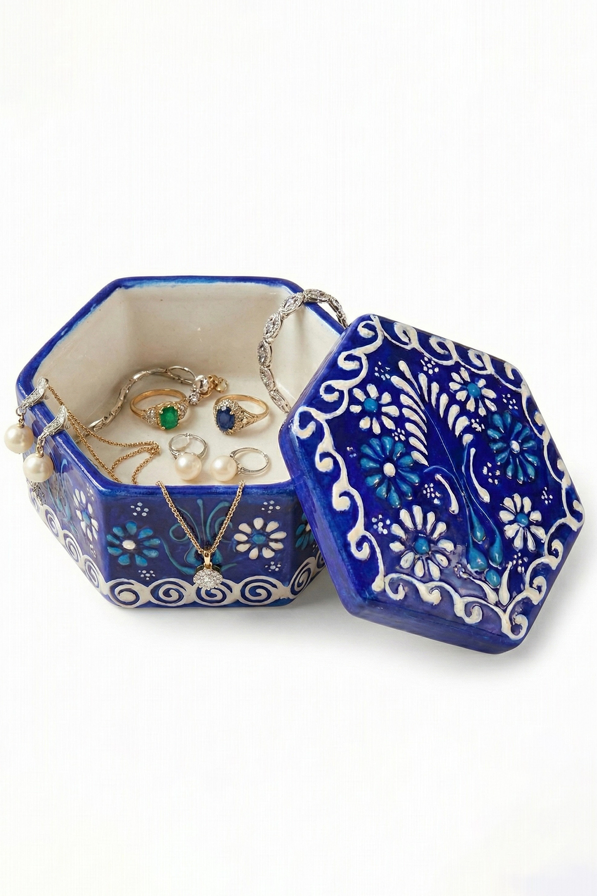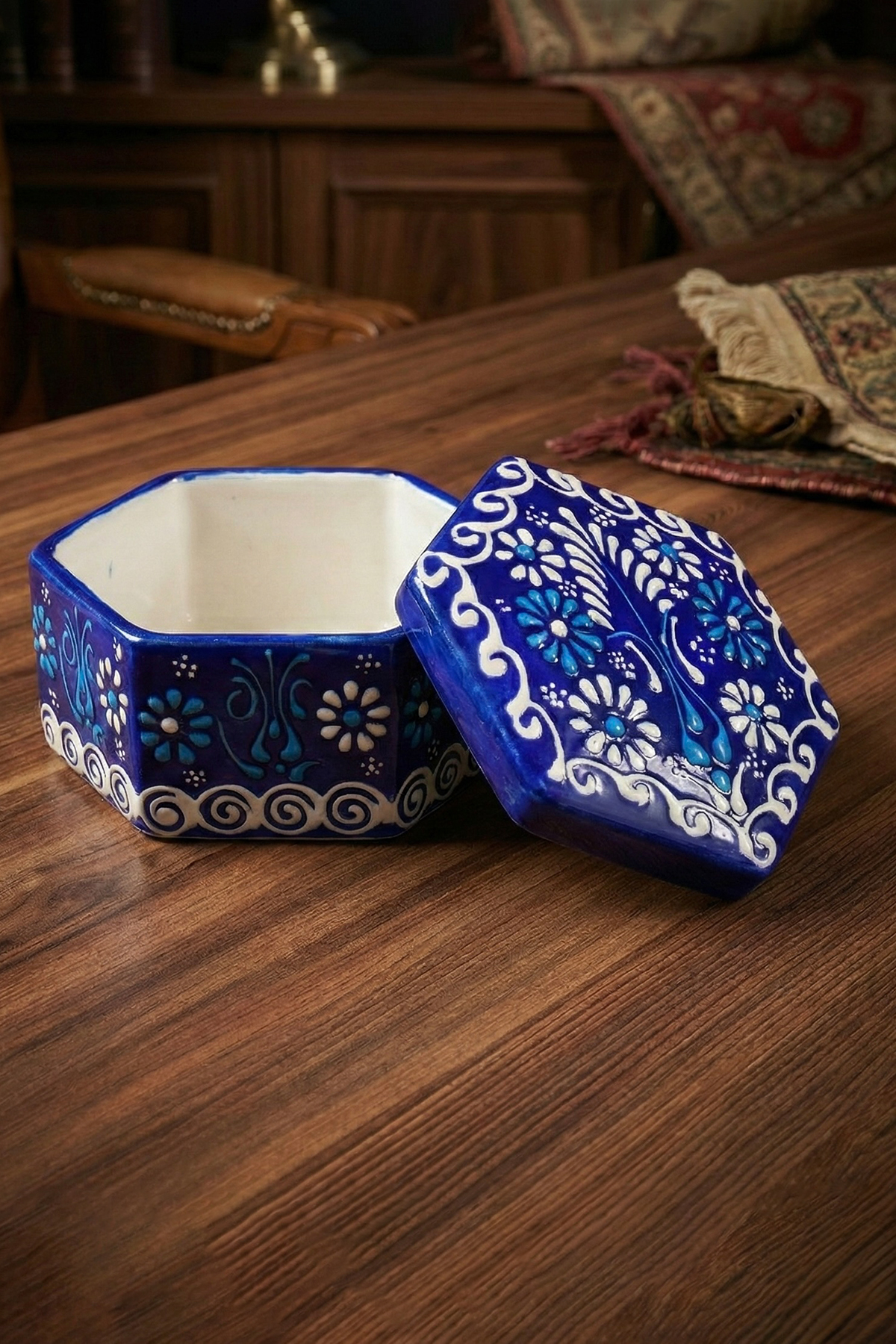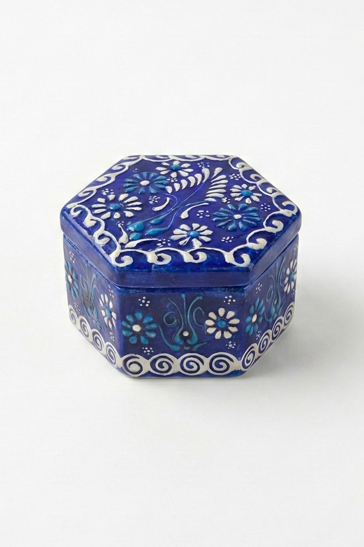 El Yapımı Dekoratif Çini Altıgen Mücevher Kutusu