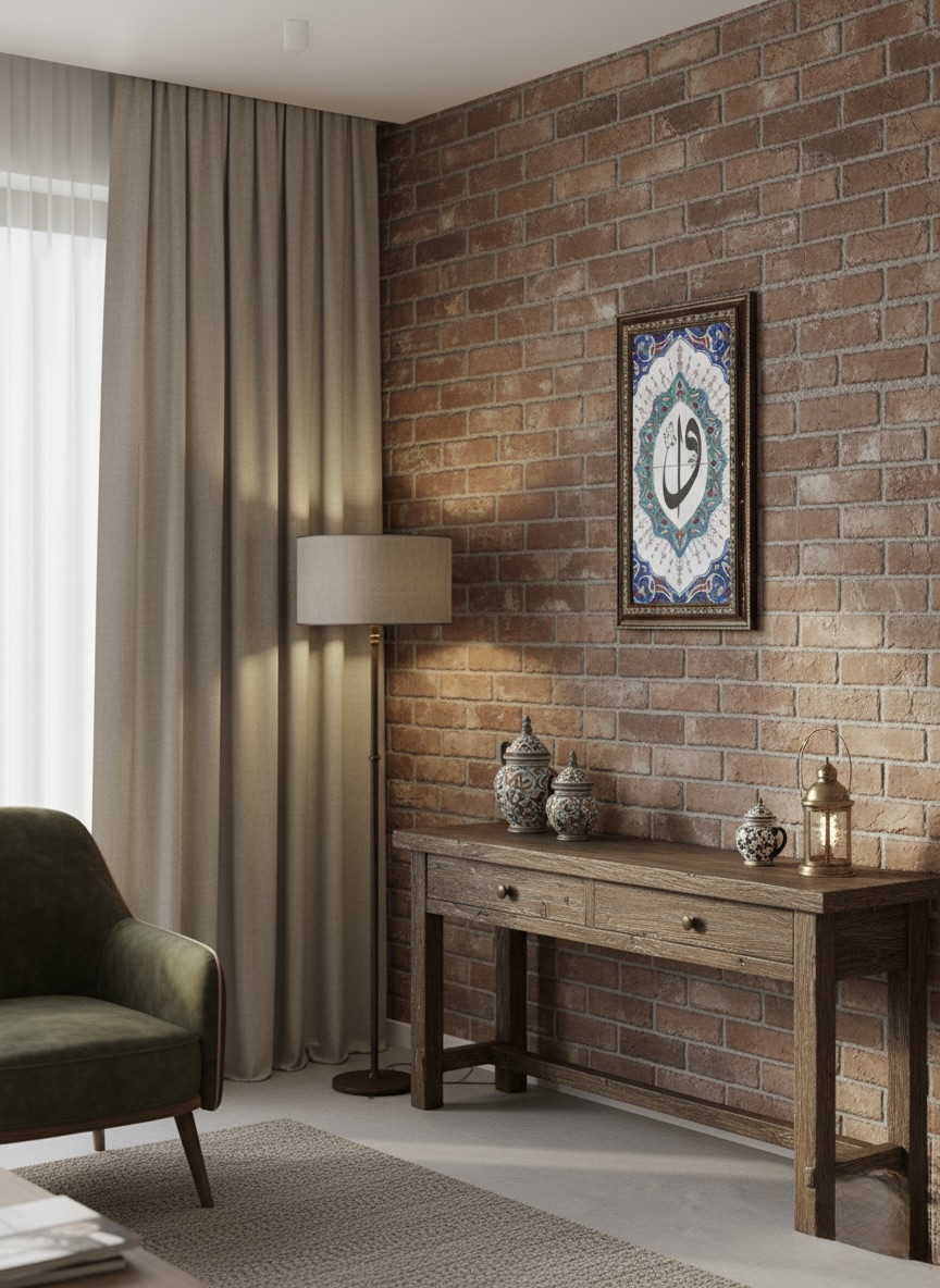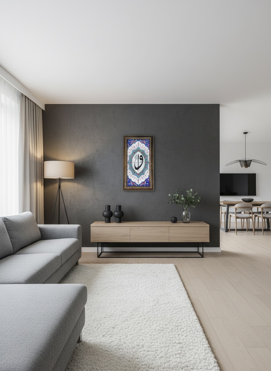 Geleneksel sanatın ruhunu modern yaşam alanınıza taşıyın. Bu özel tasarım tablo, sadece bir dekorasyon parçası değil, asırlar süren bir medeniyetin ve inancın zarif bir yansımasıdır.