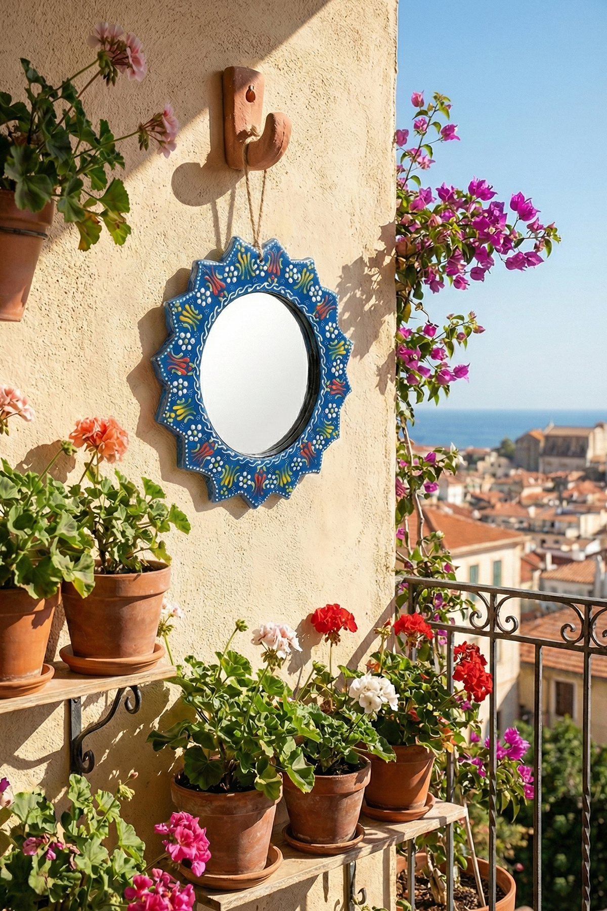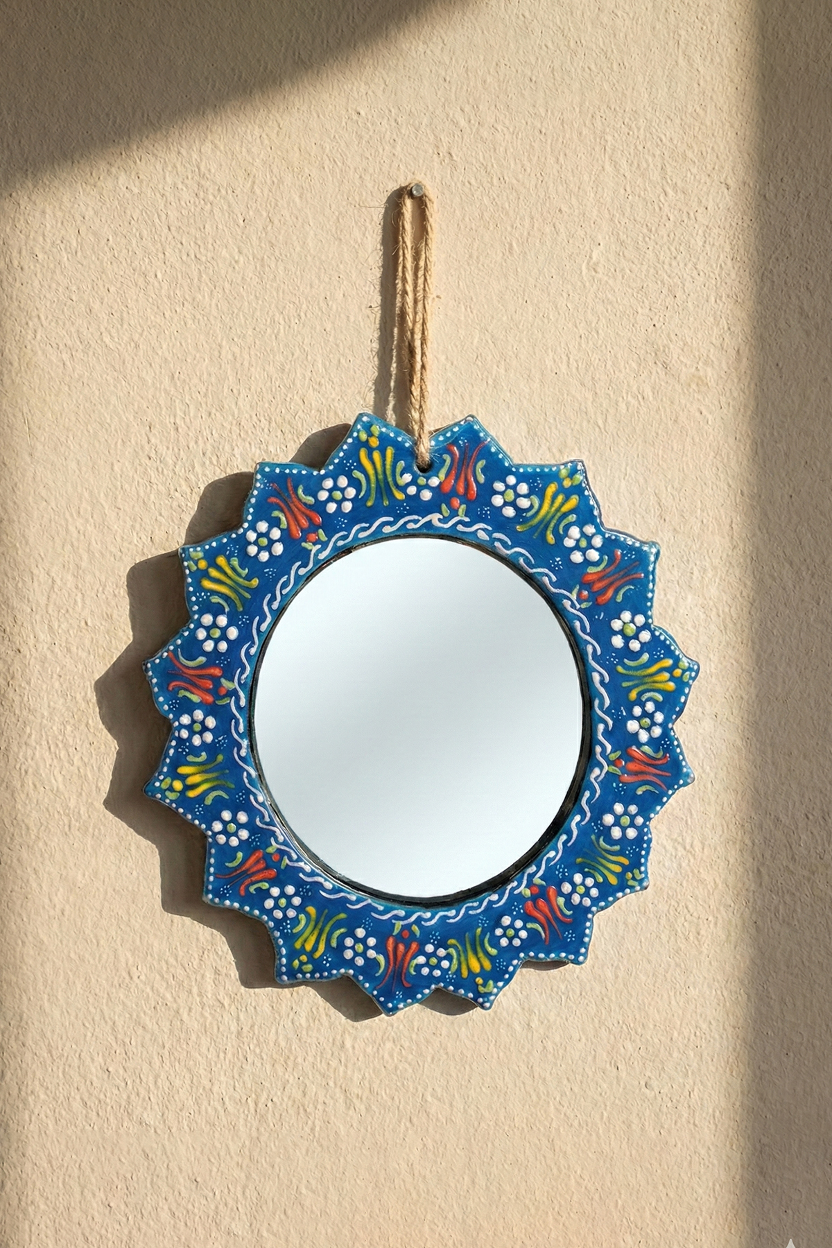Evinizin en sade duvarını, geleneksel motiflerin ışıltısıyla bir sanat köşesine dönüştürün. El işçiliğiyle bezenmiş kabartma detayları ve solmayan canlı renkleriyle bu seramik çini ayna; antre, banyo veya salonunuza hem otantik bir şıklık hem de ferah bir derinlik katmak için tasarlandı.