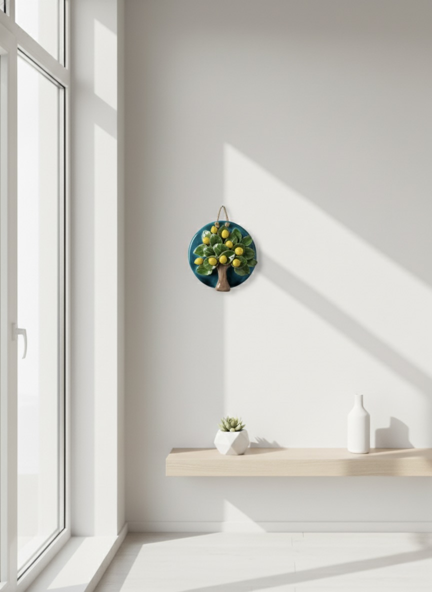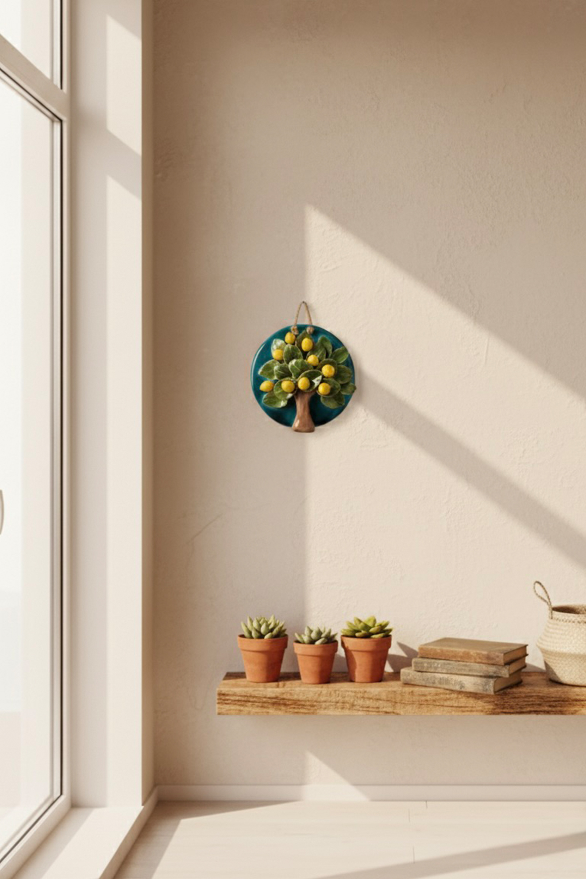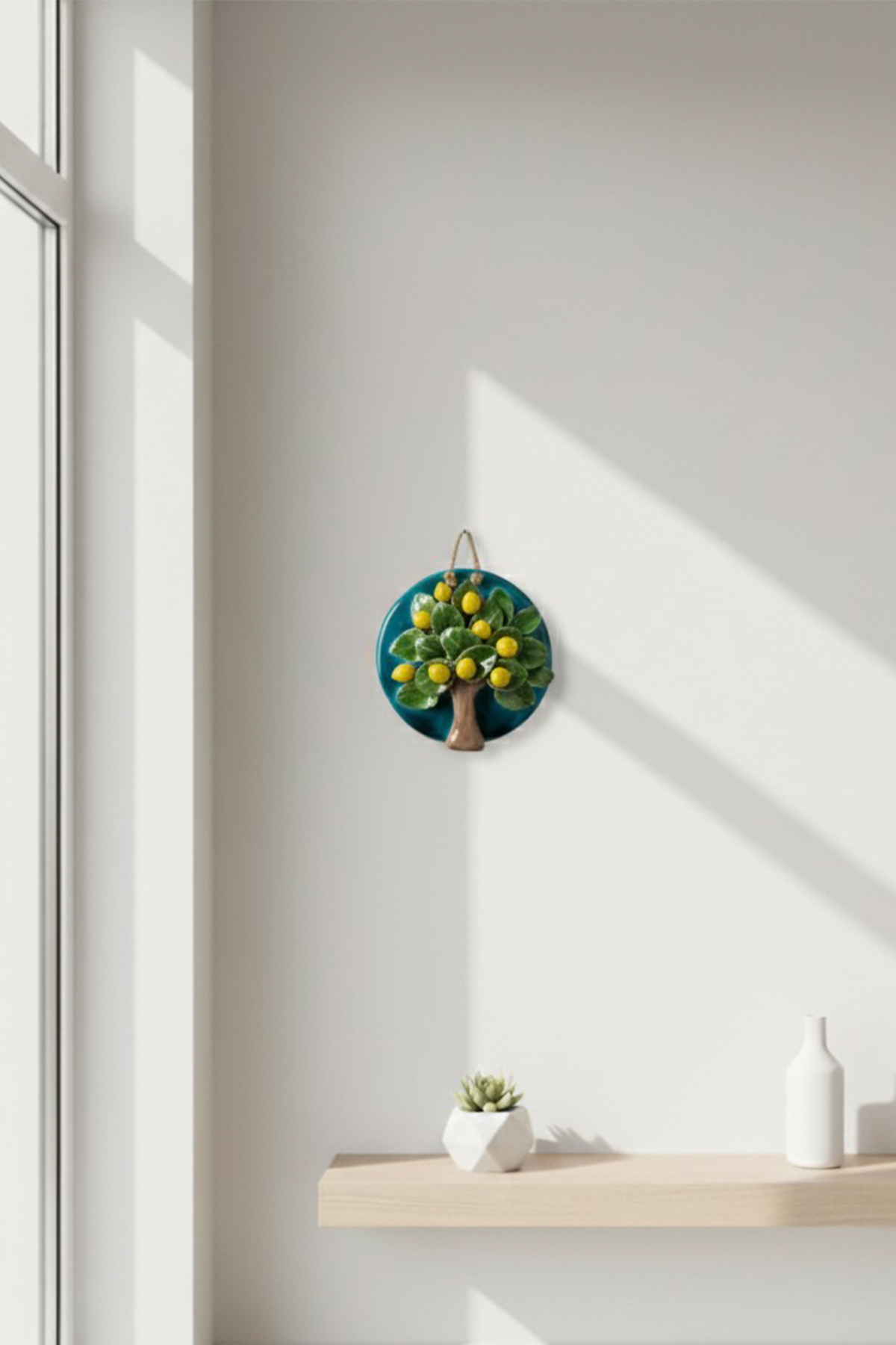 El Yapımı Kabartmalı Limon Ağacı Seramik Duvar Süsü (21cm)
