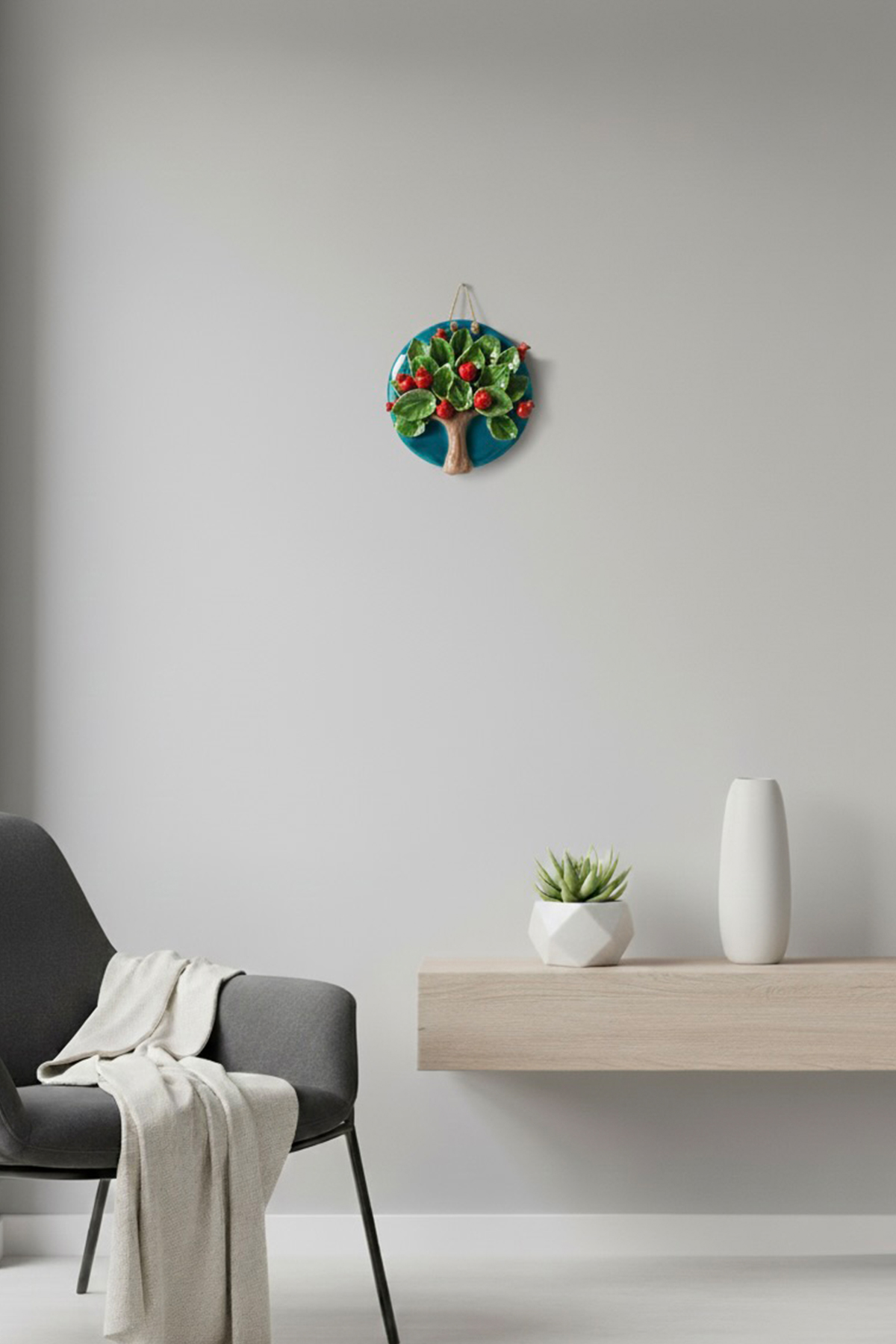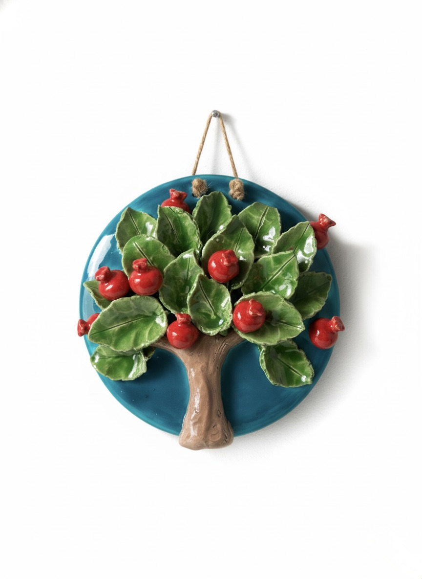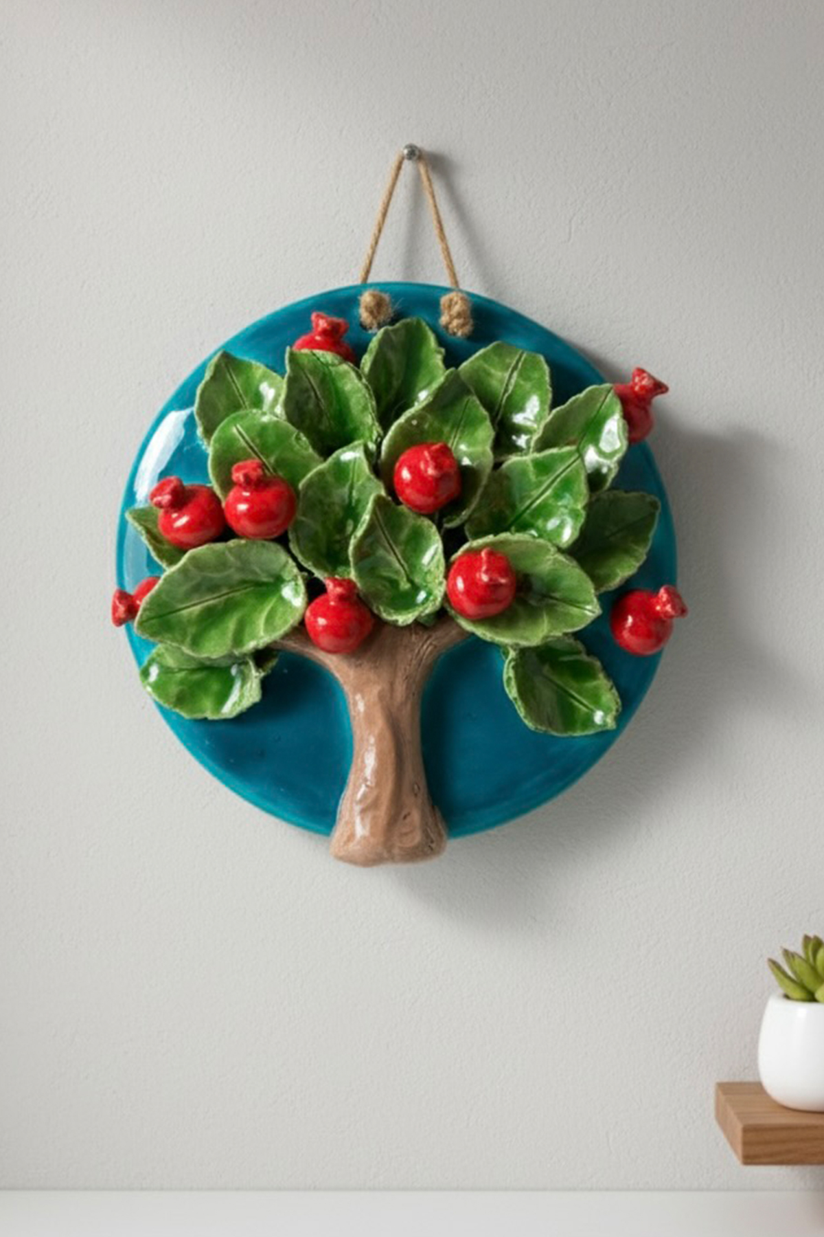 El Yapımı Kabartmalı Nar Ağacı Seramik Duvar Süsü (21cm)