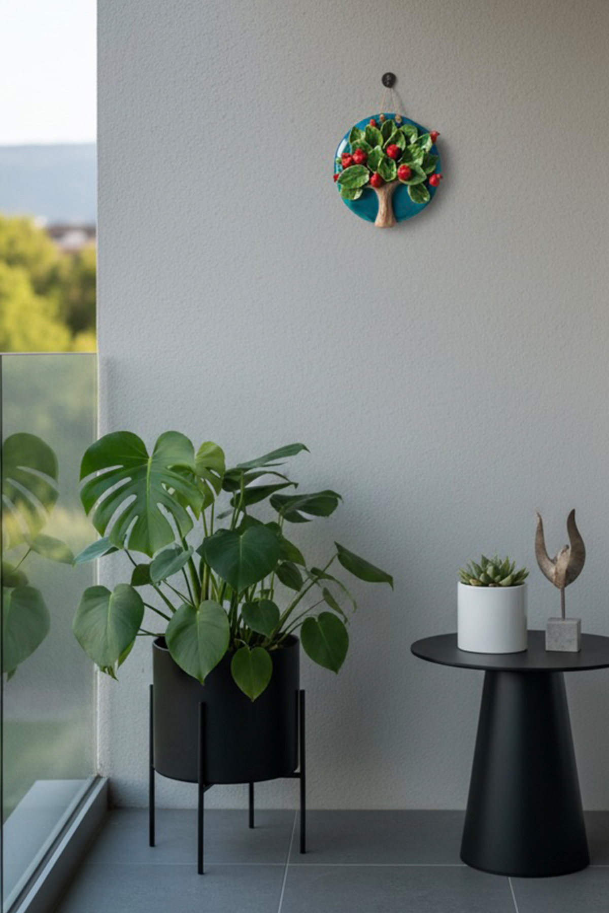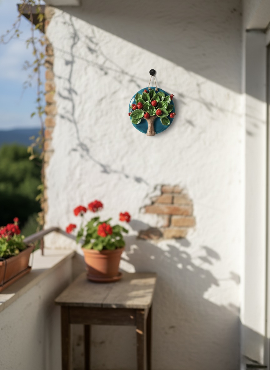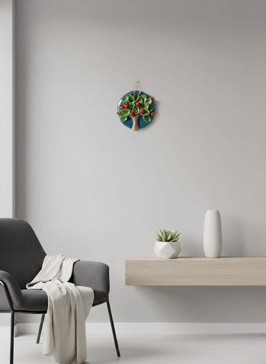 El Yapımı Kabartmalı Nar Ağacı Seramik Duvar Süsü (21cm)