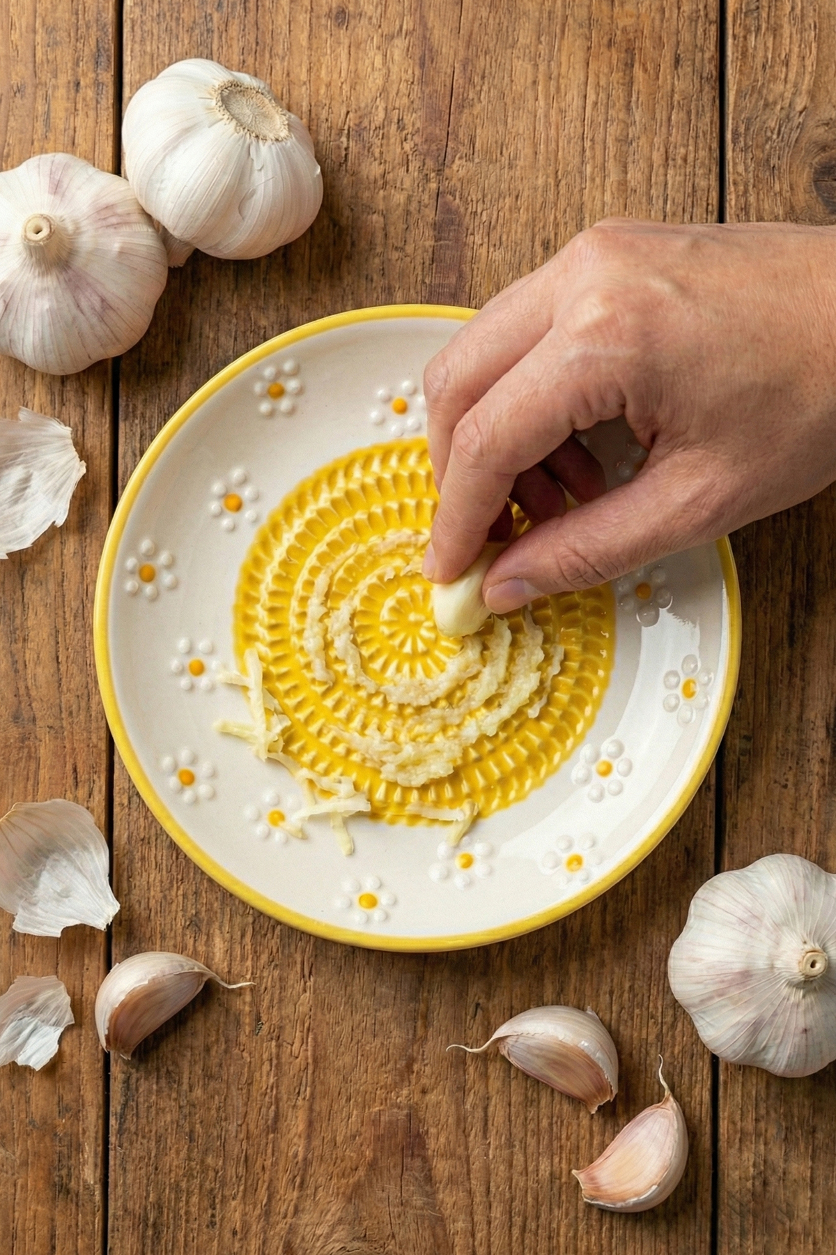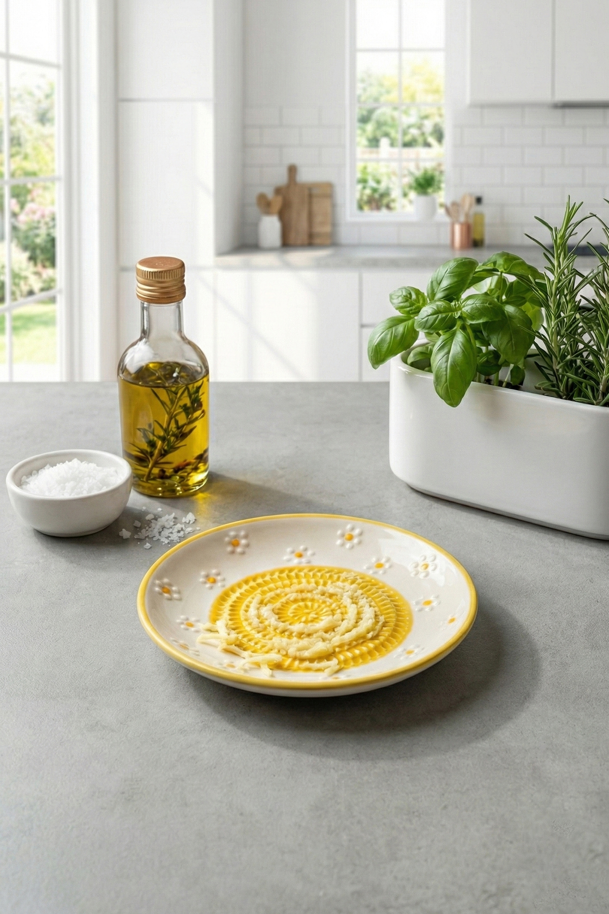El Yapımı Seramik Rende Tabağı (13 cm) – Sarımsak, Zencefil, Meyve Püresi ve Bebek Maması Hazırlayıcı