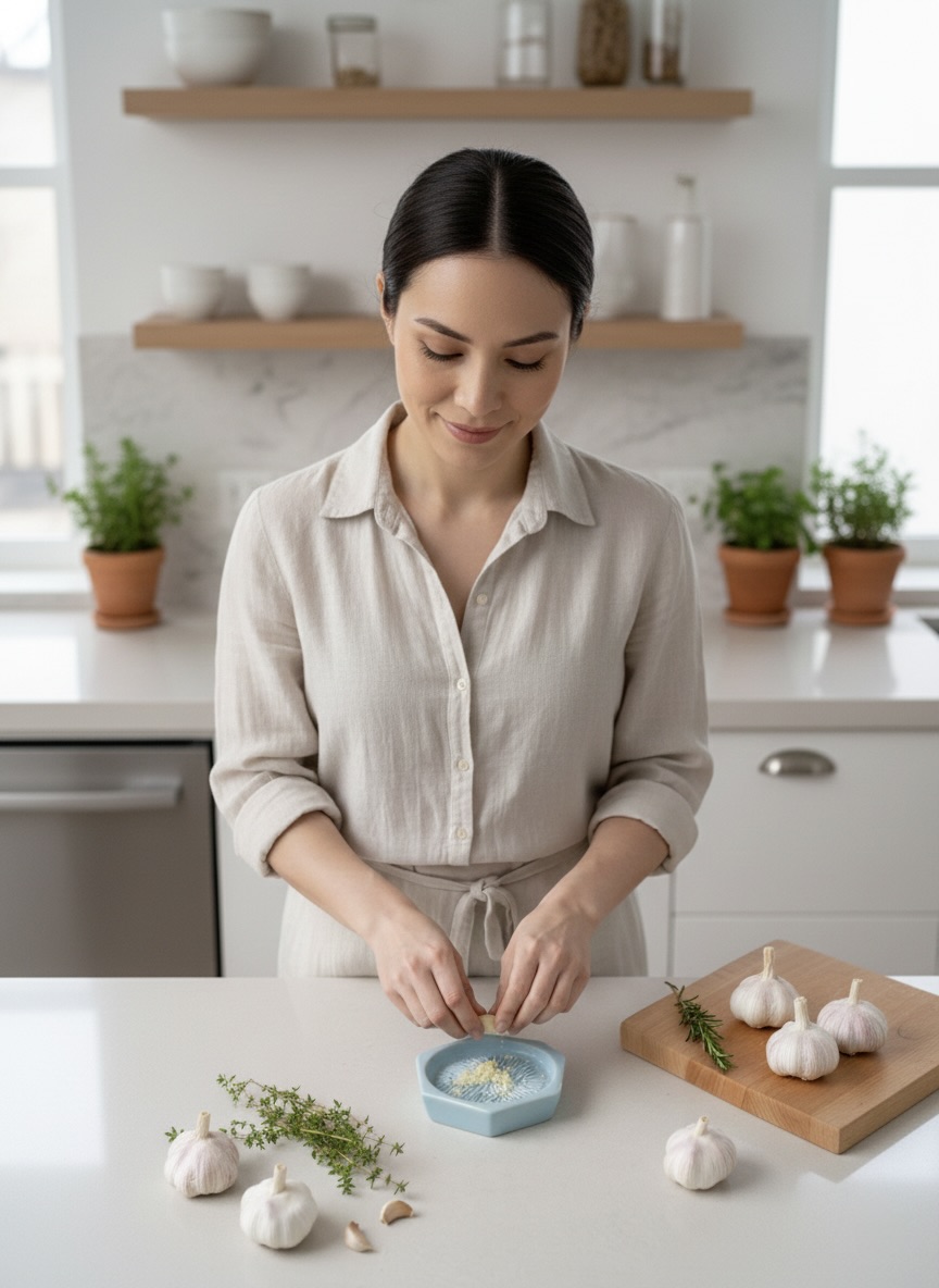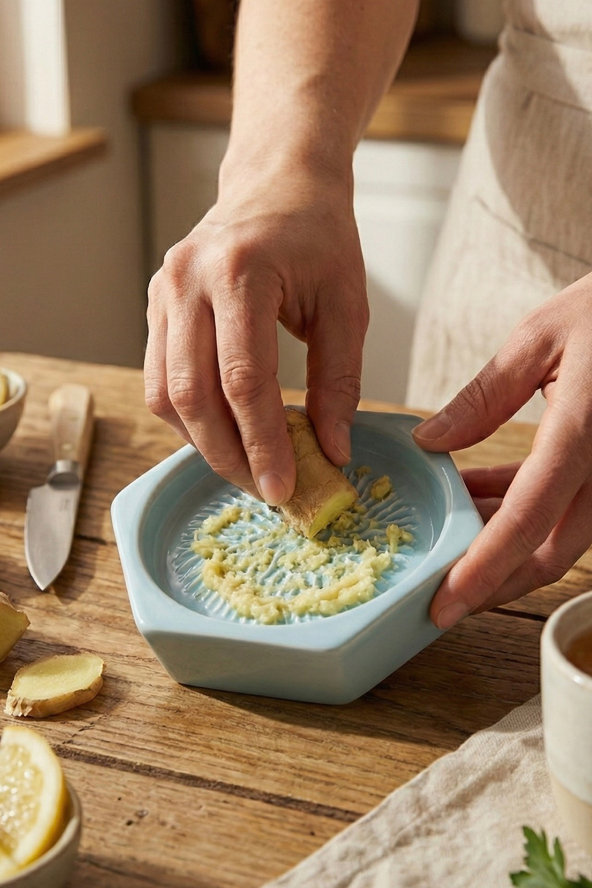 Kullanım: Sarımsak, zencefil, çeşitli meyveler ve bebek maması gibi malzemeleri kolayca rendeleyebilirsiniz. Tabağın özel tasarlanmış yüzeyi, dairesel hareketlerle malzemeyi kenardan ortaya doğru sürtmenize olanak tanır.