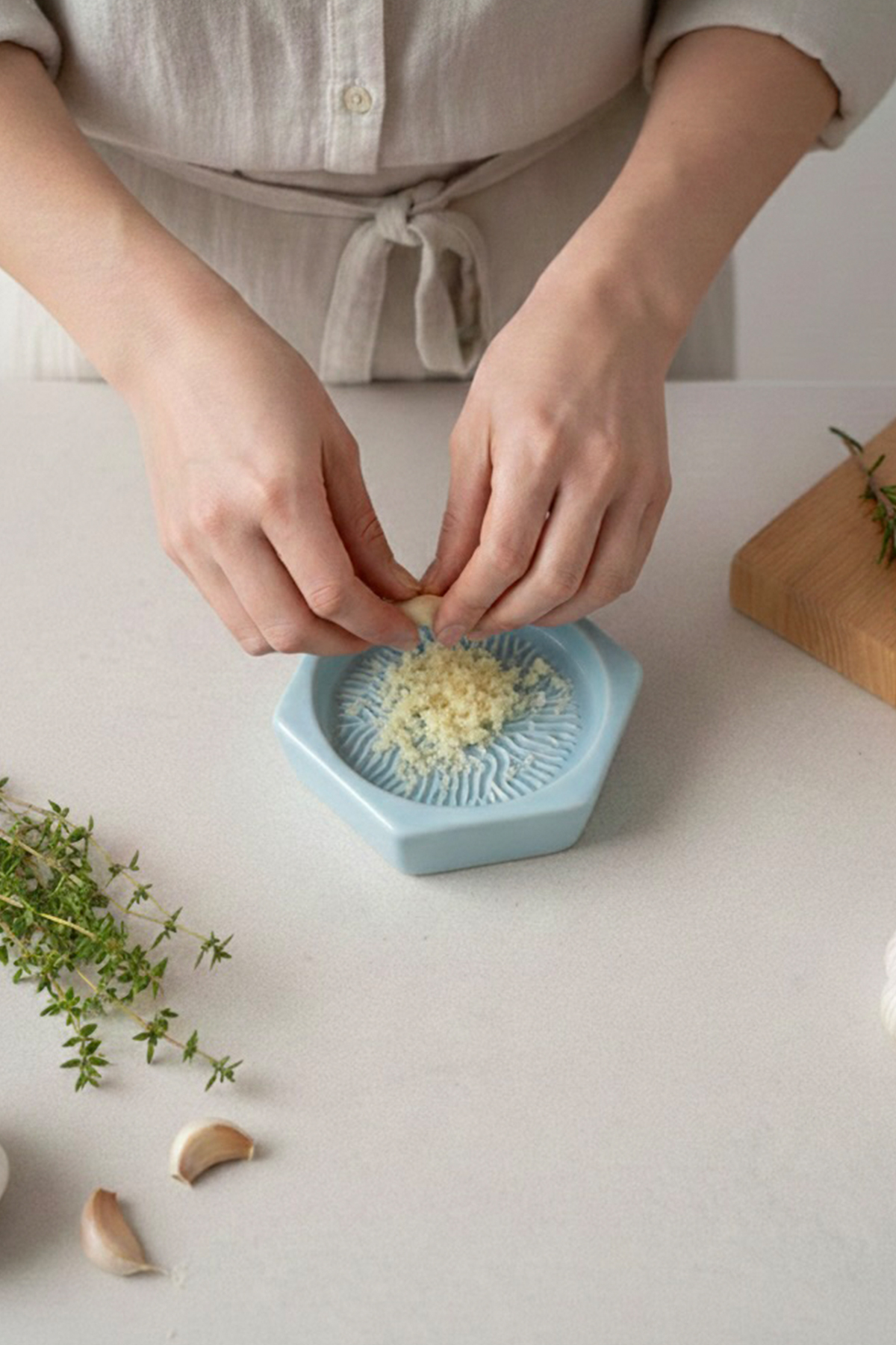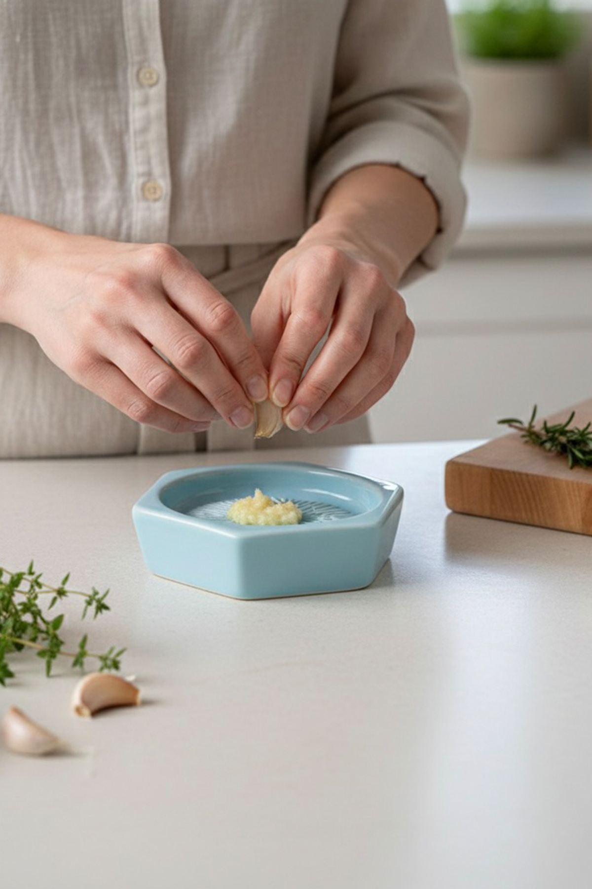 El Yapımı Seramik Rende Tabağı (10 cm) – Sarımsak, Zencefil, Meyve Püresi ve Bebek Maması Hazırlayıcı