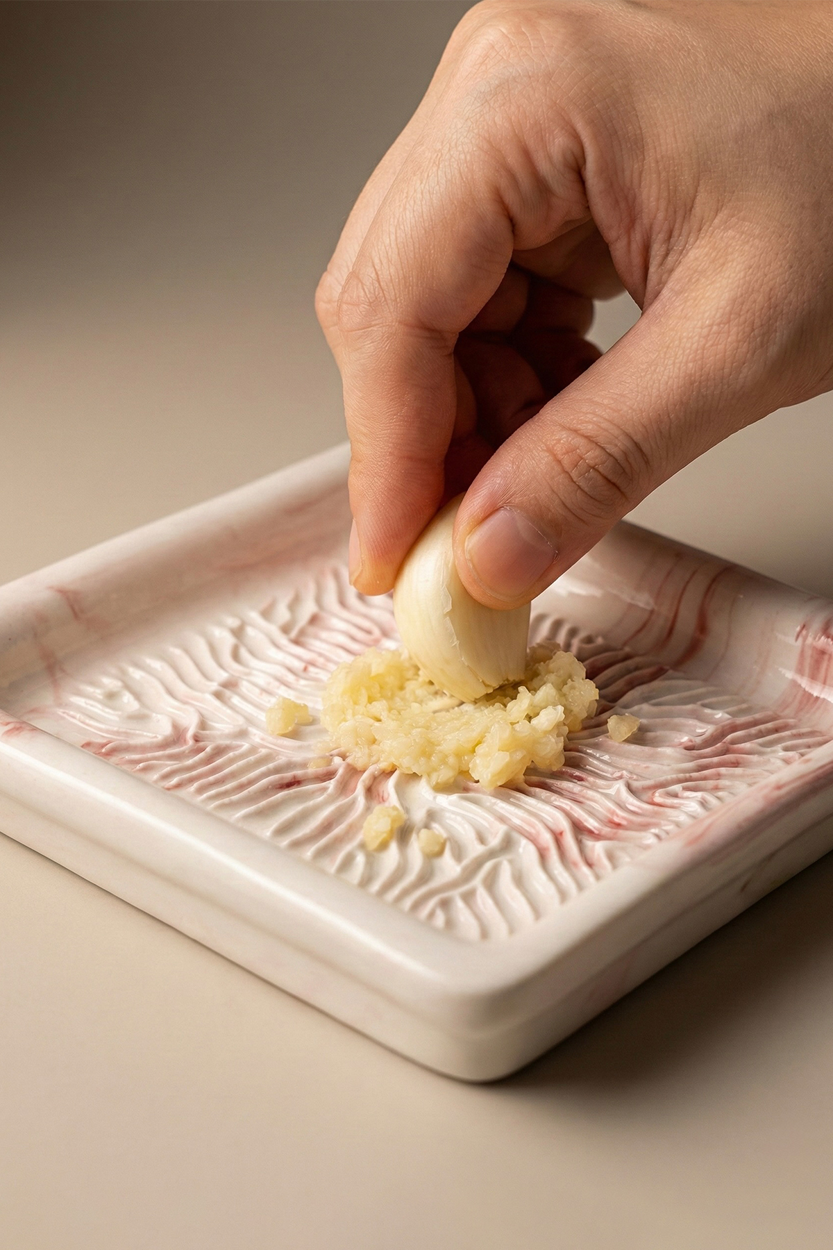 El Yapımı Seramik Rende Tabağı (10 cm) – Sarımsak, Zencefil, Meyve Püresi ve Bebek Maması Hazırlayıcı