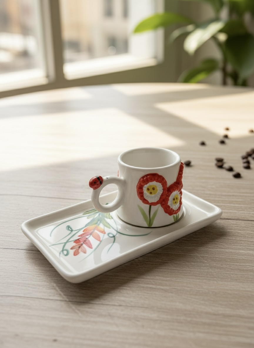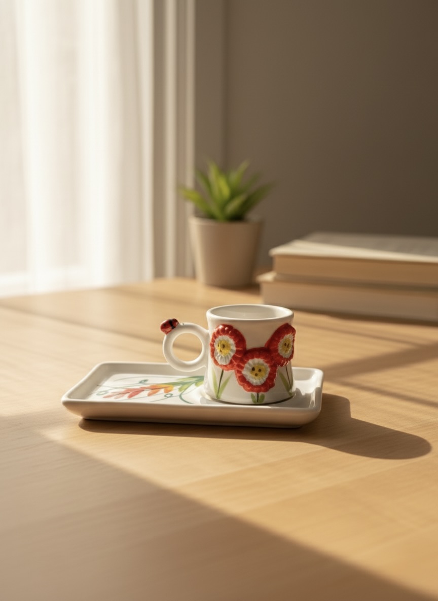 Günün en güzel molası sizin olsun. Kendinize ayırdığınız o özel kahve anını, sıradan bir fincanla değil, el emeğiyle şekillenmiş bu zarif tasarımla taçlandırın. Türk kahvesi veya Espresso keyfiniz için ideal olan bu tek kişilik set, çalışma masanızın veya dinlenme köşenizin en şık detayı olmaya aday.