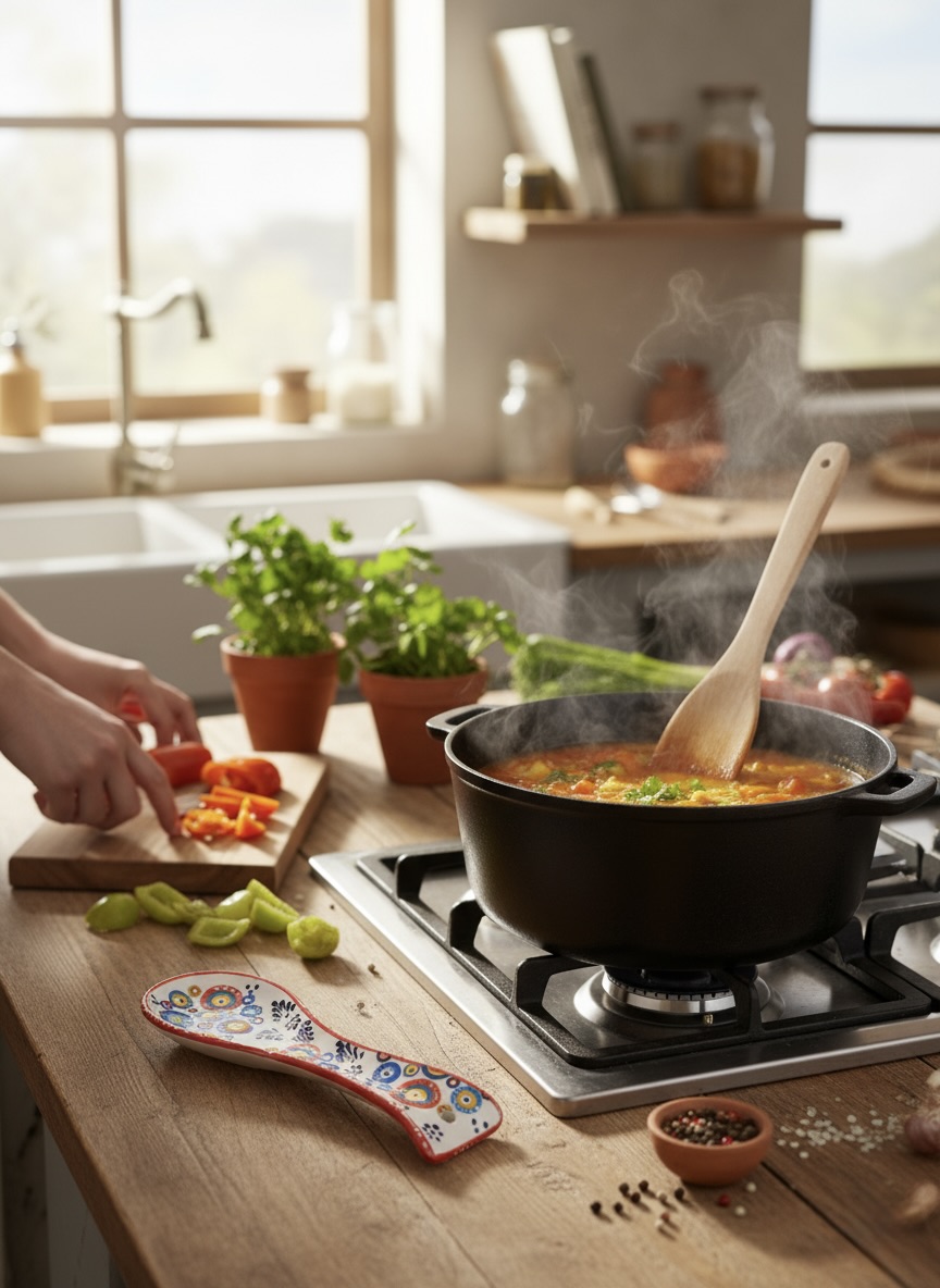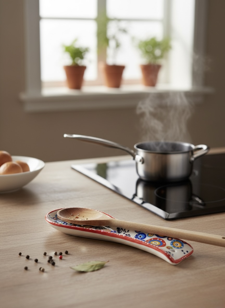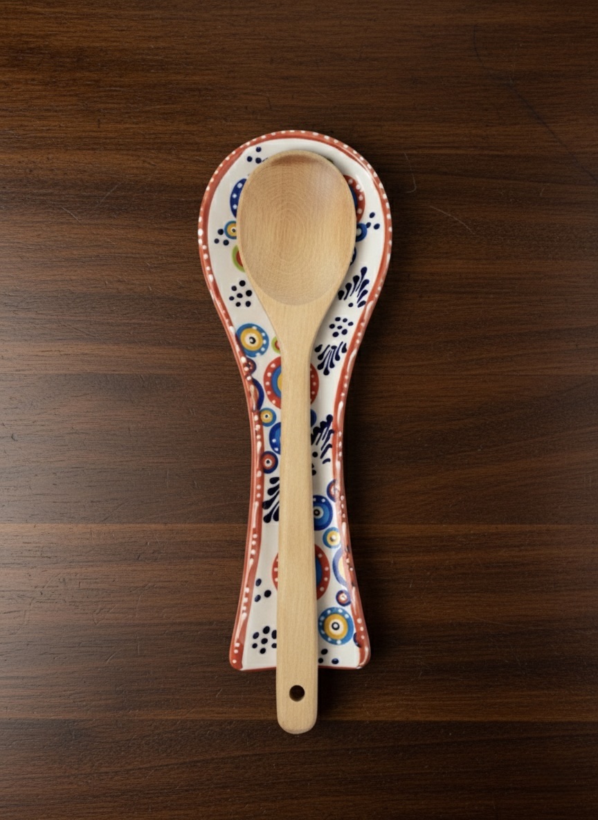 Bu eşsiz seramik kaşıklık, sadece bir mutfak aracı değil, aynı zamanda bir sanat eseri. Canlı renkleri ve geleneksel desenleriyle mutfağınıza neşe ve otantik bir hava katın.