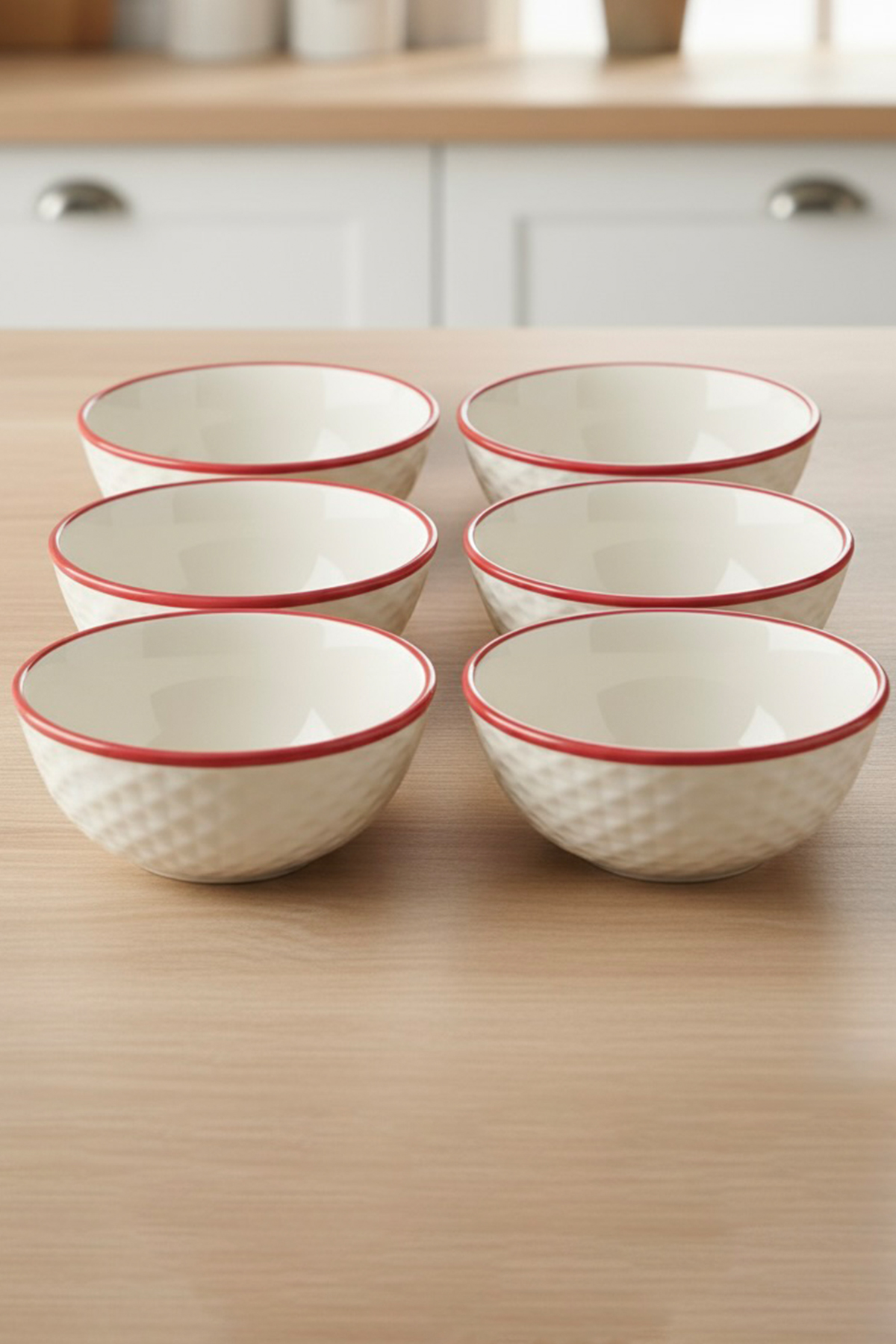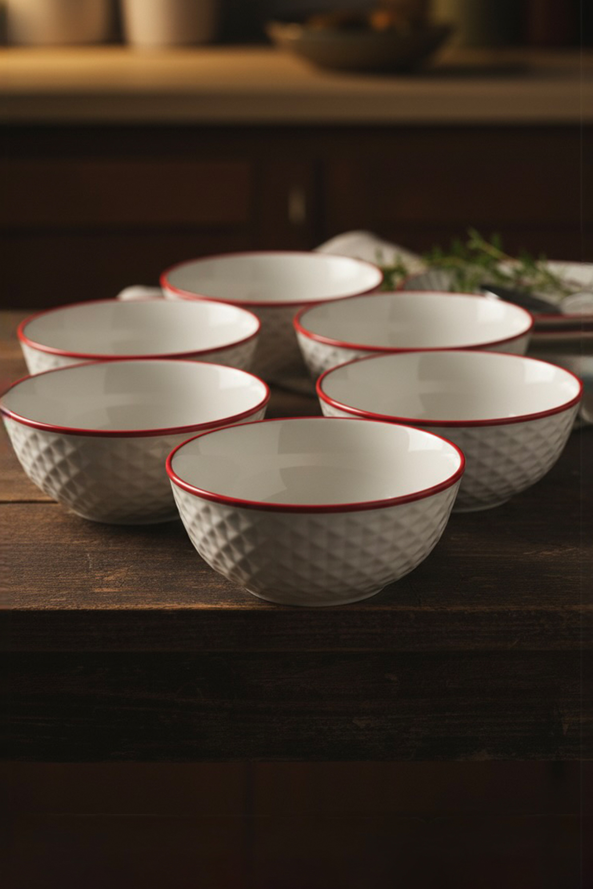 Kırmızı Yıldız Desenli 6’lı Çok Amaçlı Yuvarlak Kase Takımı – Çorba, Meyve, Çerez, Sos ve Kahvaltılık Sunum Seti