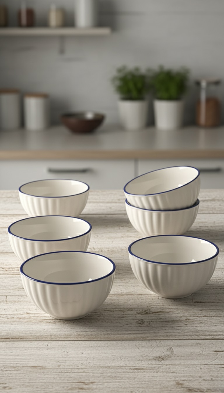 Beyaz Petek Desenli 6’lı Çok Amaçlı Yuvarlak Kase Takımı – Çorba, Meyve, Çerez, Sos ve Kahvaltılık Sunum Seti