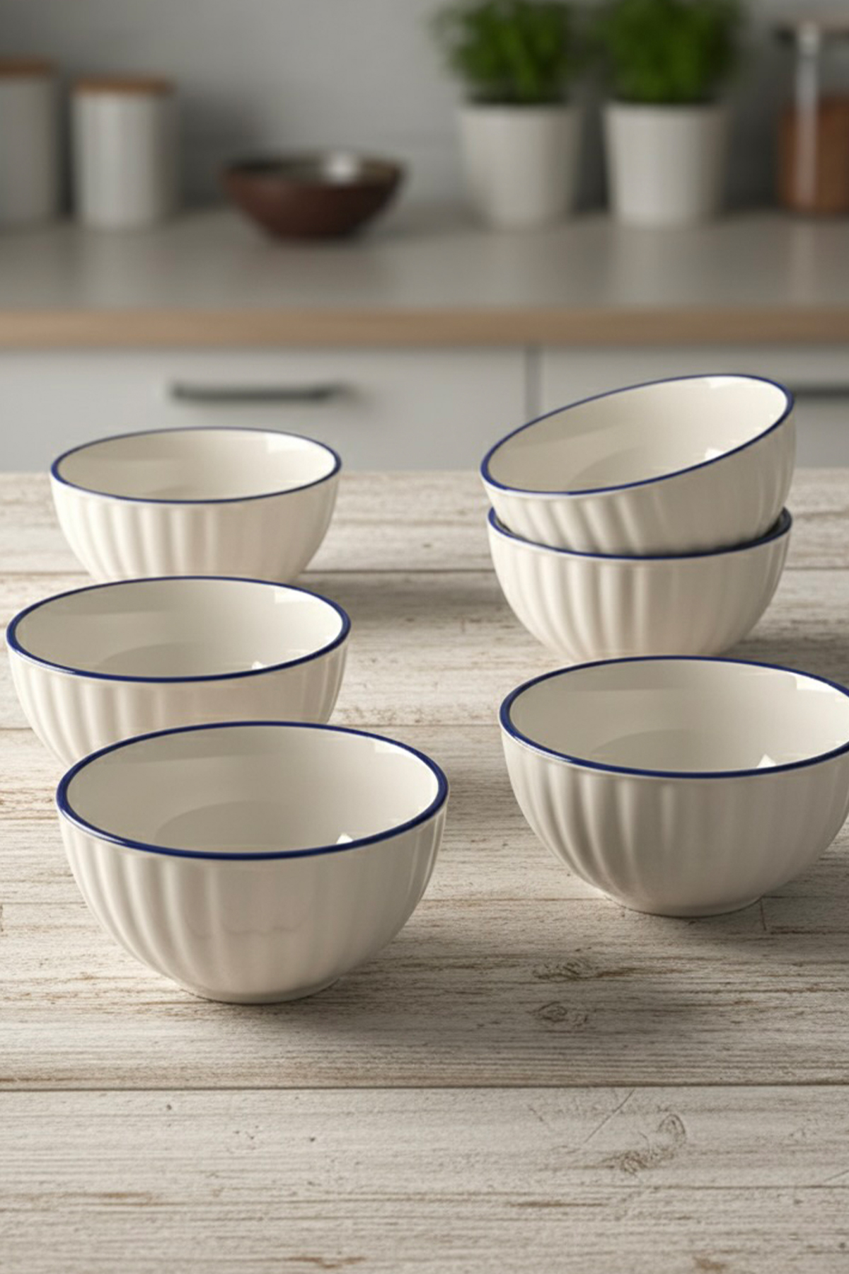 Lacivert Bulut Desenli 6’lı Çok Amaçlı Yuvarlak Kase Takımı – Çorba, Meyve, Çerez, Sos ve Kahvaltılık Sunum Seti