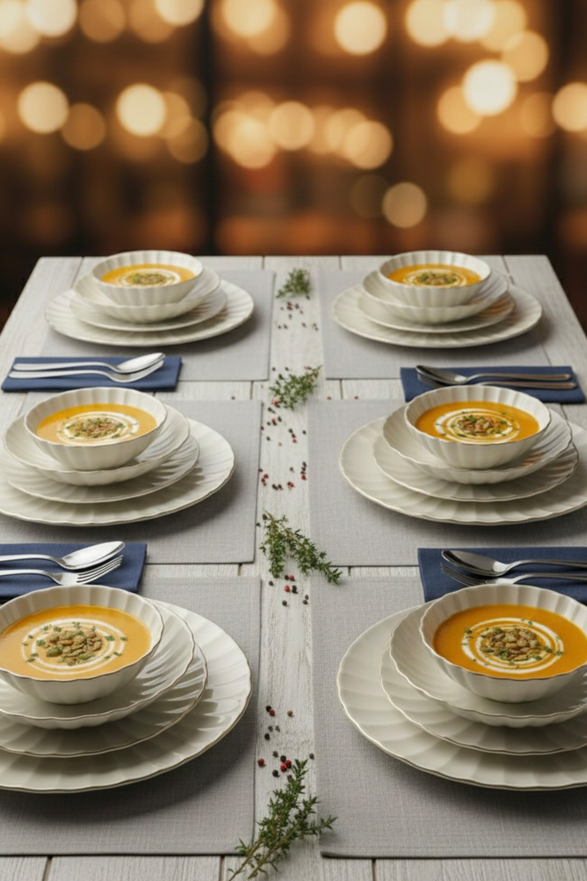Paket İçeriği: 6 adet servis tabağı,6 adet yemek tabağı,6 adet pasta tabağı ve 6 adet çorba kasesi mevcuttur.
