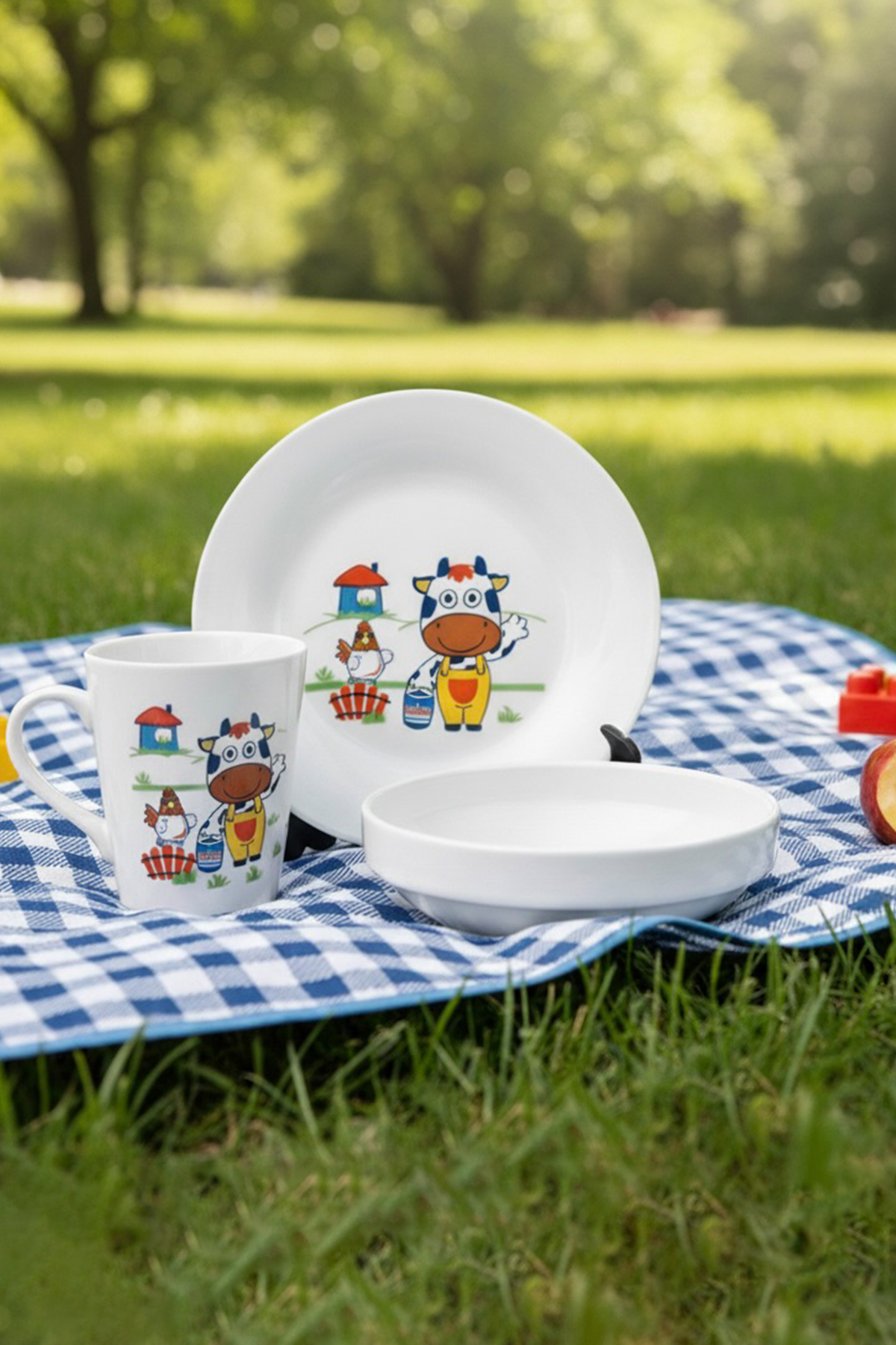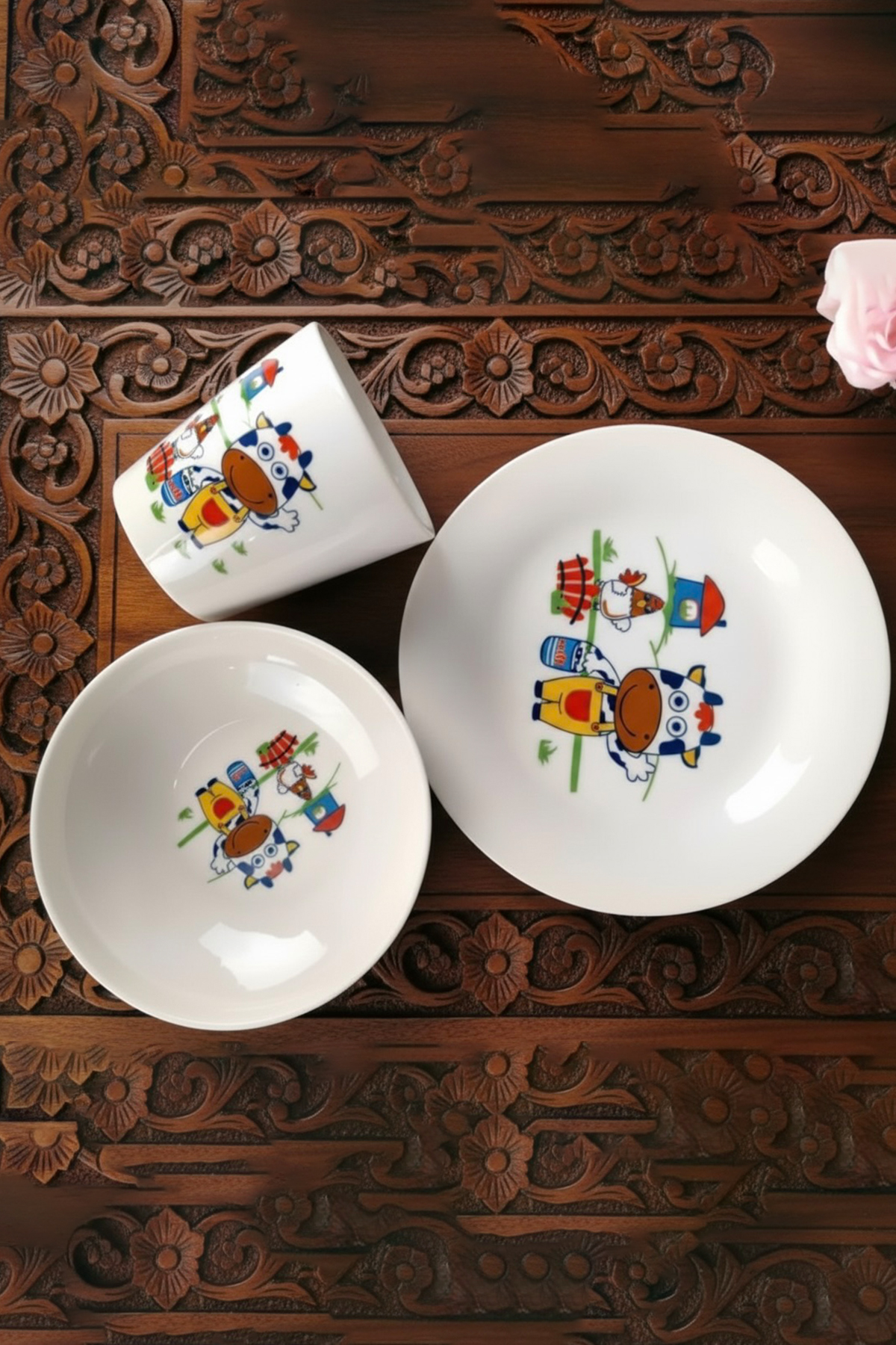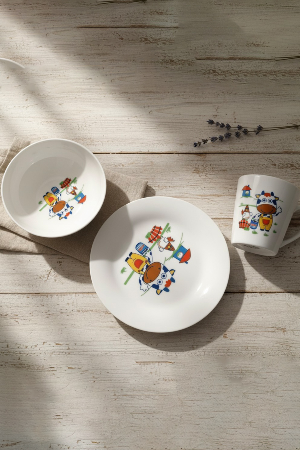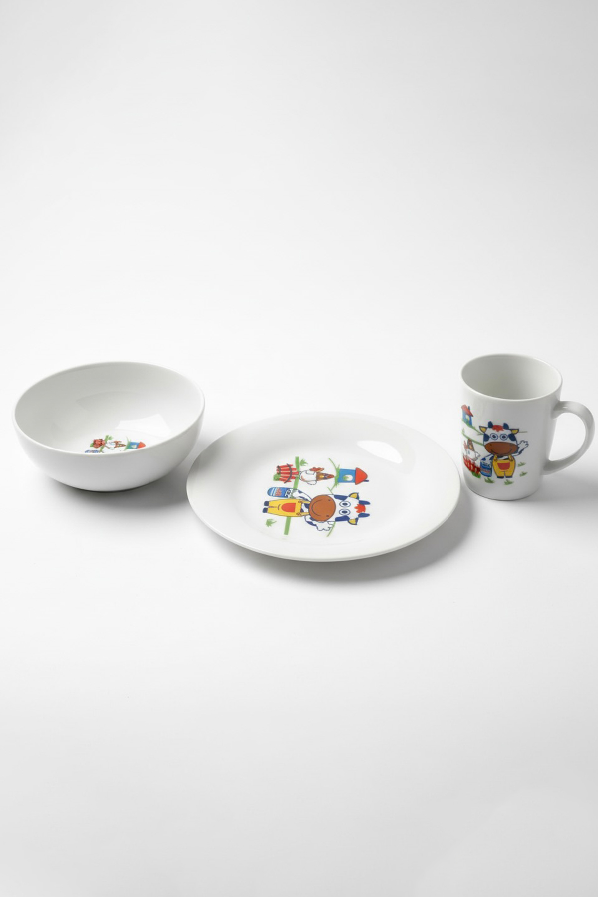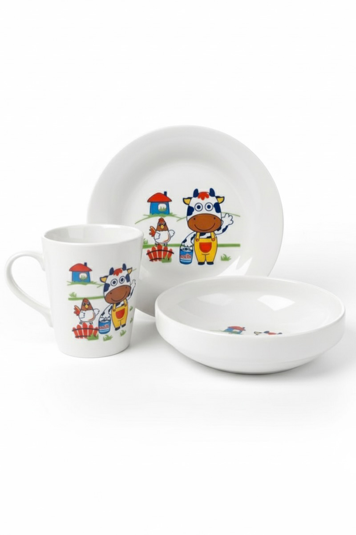 Tulü Porselen 3 Parça Sevimli İnek Desenli Bebek ve Çocuk Yemek Seti