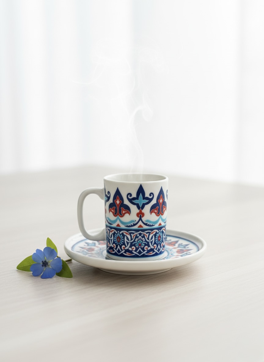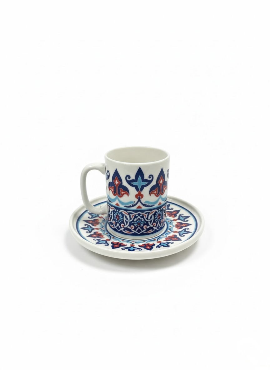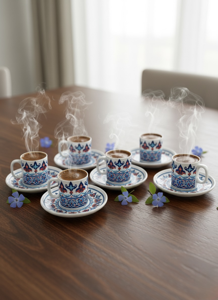 Tulu Porselen Çini Desenli 6 Kişilik 12 Parça Kahve Fincan Takımı