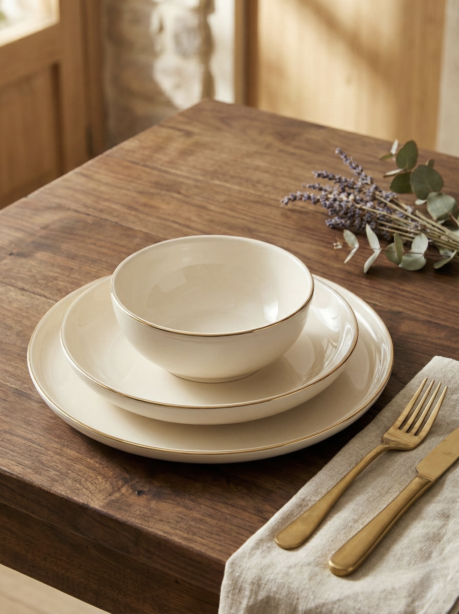 Yemek sunumlarınız için ihtiyacınız olan her şey, altın şıklığıyla tek bir kutuda. Tulu Porselen kalitesiyle üretilen bu 6 kişilik (24 parça) yemek takımı; çorba kasesinden servis tabağına kadar eksiksiz bir set sunar. Porselenin pürüzsüz dokusu ve kenarlarındaki zarif gold şeritler, her öğünü özel bir davete dönüştürmek için tasarlandı.