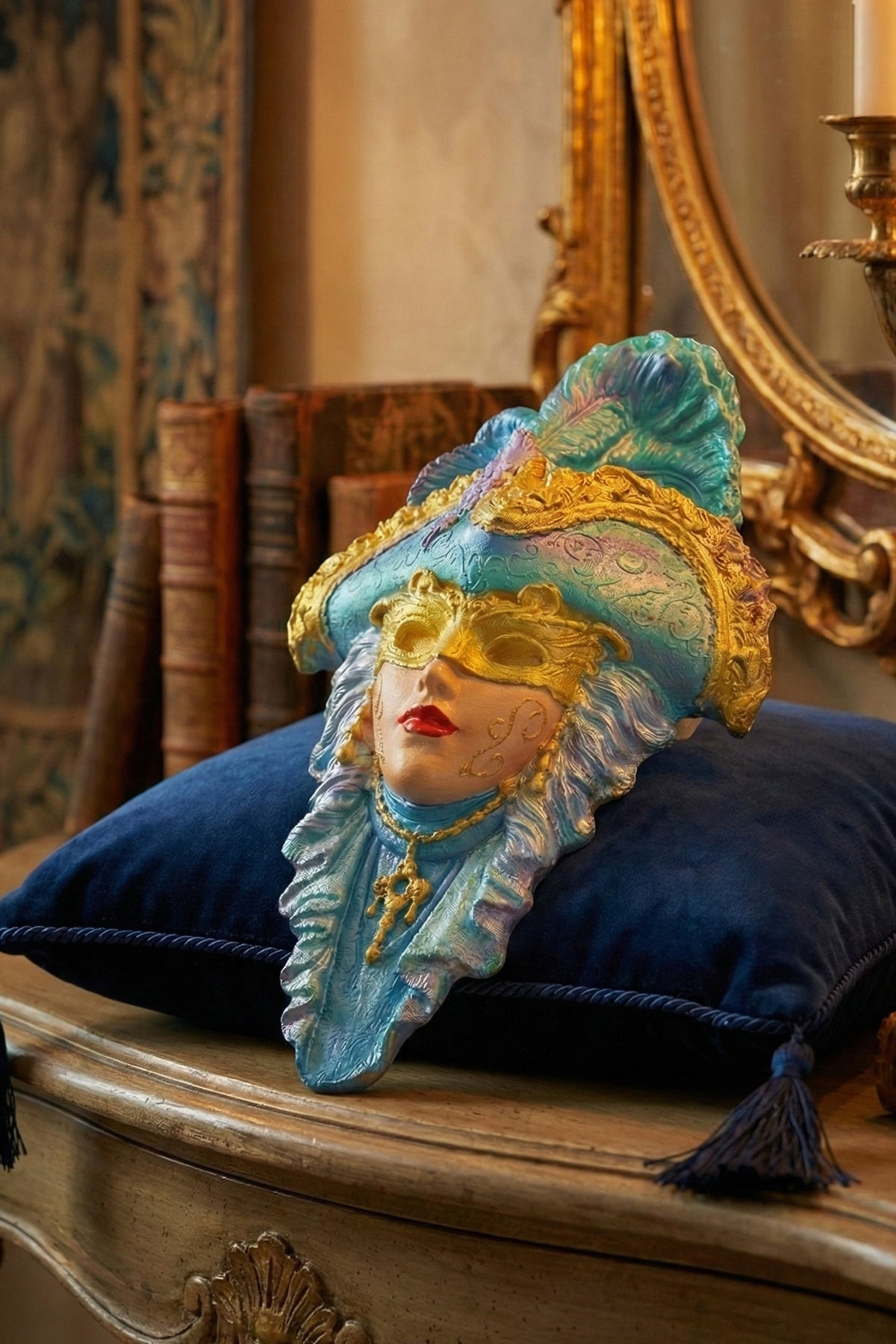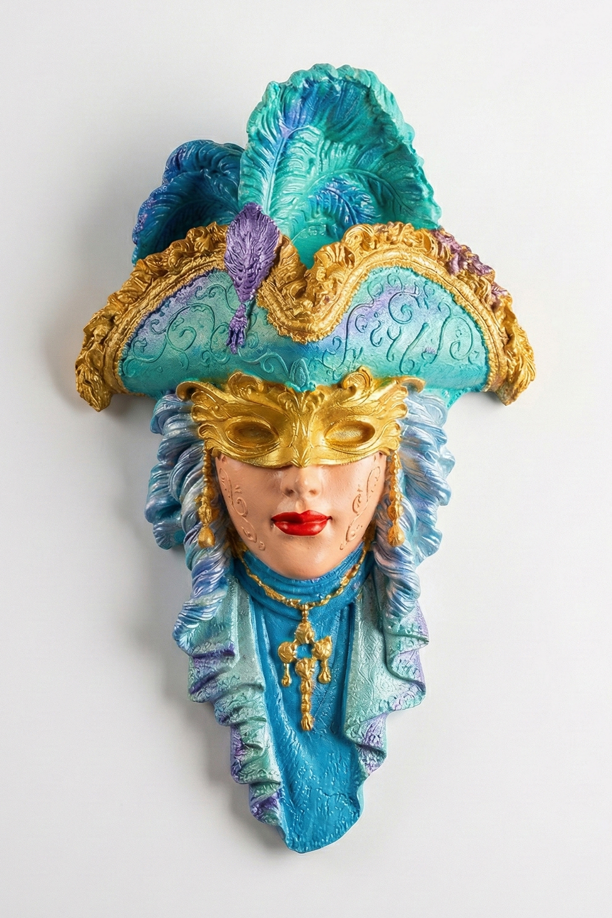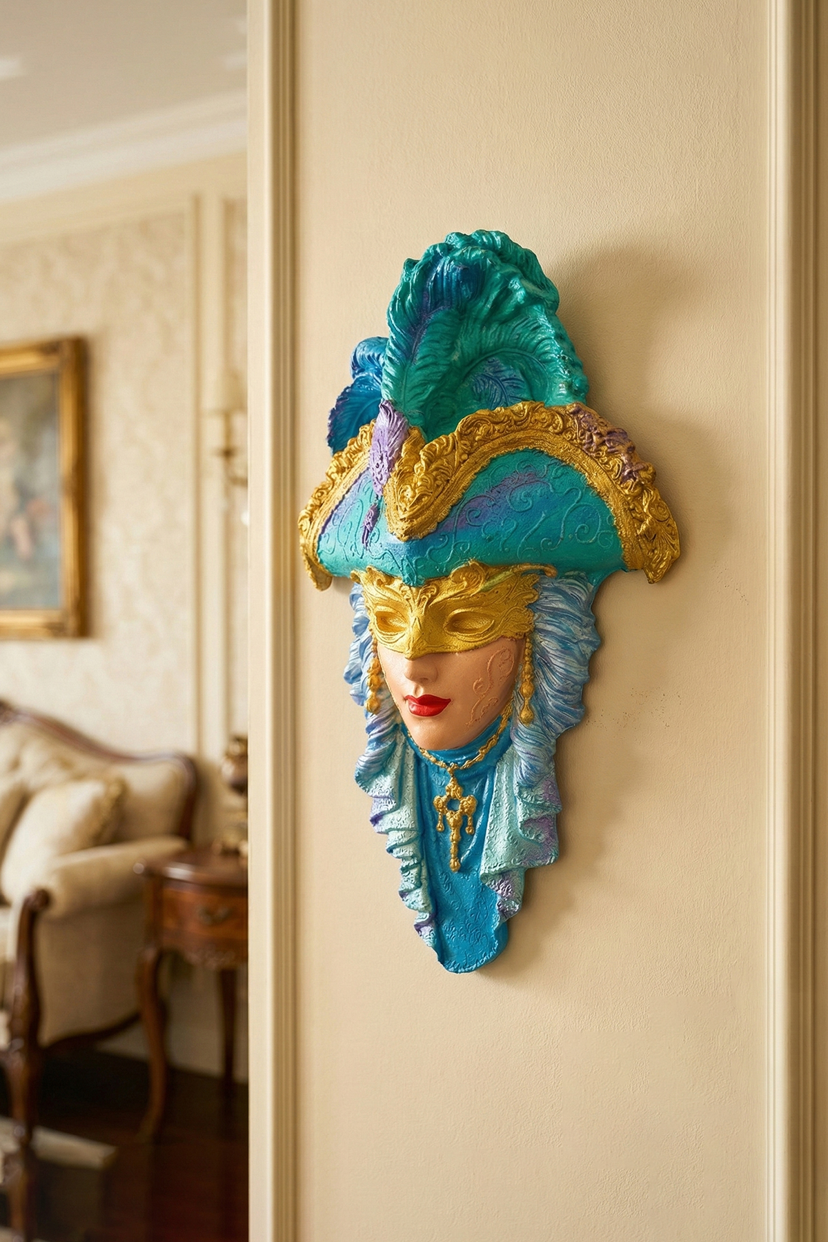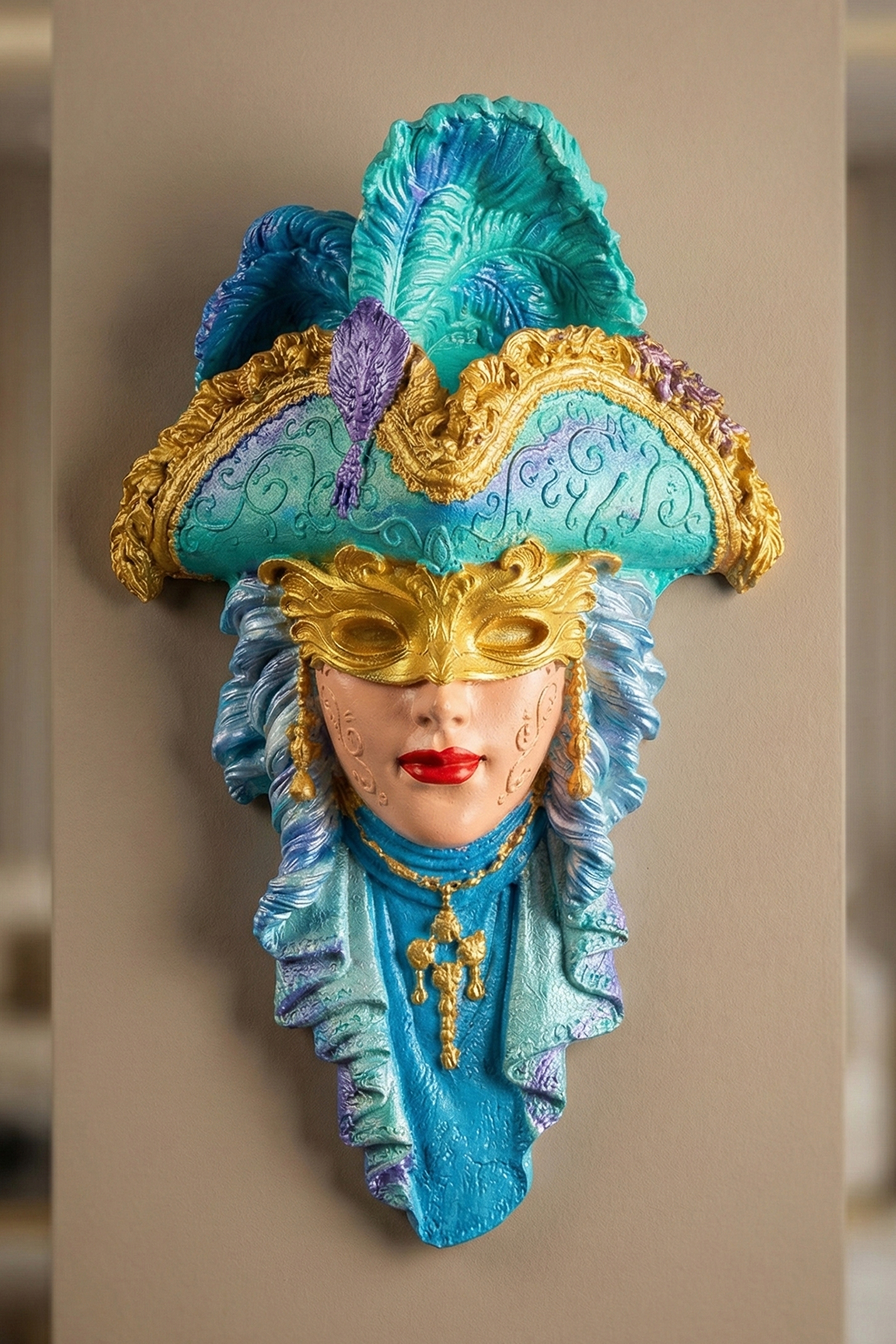 Evinize Venedik karnavallarının ihtişamını ve gizemini taşıyın! Bu zarif ve sanatsal duvar maskesi, detaylı işçiliği ve canlı renkleriyle mekanınıza sofistike bir dokunuş katacak.